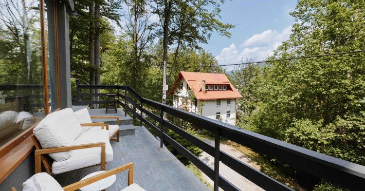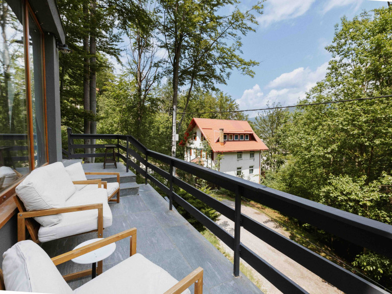 Bine ai venit la Hublou Home, locul ideal pentru relaxare in inima naturii in Sinaia, Oras Regal! Situate in mijlocul peisajului spectaculos al Muntilor Bucegi, apartamentele noastre iti ofera o experienta unica de confort si liniste, fiind perfecte pentru familii sau cupluri care doresc sa se deconecteze sau sa lucreze departe de agitatia cotidiana. Indiferent de anotimp, Vila Hublou Home este destinatia perfecta pentru a descoperi frumusetea autentica a Sinaiei. Facilitati Central: La 10 minute de mers pe jos de Hotel International Privat: Situat in padure, pe o strada retrasa, fara vecini apropiati Boutique: Doar 5 apartamente, cu un design distinct si sofisticat Confort: Relaxare si odihna intr-un spatiu cald si primitor Vitalitate: Apa si aer purificate, din muntele si padurea care ne inconjoara Birou la munte: Utilat si conectat la internet wi-fi hi-speed Outdoor generos: Gradina si spatii de relaxare, curte cu foisor, mobilier de gradina, loc de joaca, balcon privat, mobilat si cu vedere spre munti Dotari integrale: Apartamente spatioase cu chicineta, complet utilate si mobilate pentru confortul tau Parcare privata si gratuitaDatorita dinamicitatii domeniului disponibilitatea ofertelor se modifica de la un moment la altul. De aceea ofertele sunt valabile in limita locurilor disponibile. Agentia nu este responsabila pentru eventualele neconcordante care pot aparea intre informatiile privind tarifele si alte detalii din site si informatiile primite in agentie. In aceste cazuri vor avea prioritate, intotdeauna, informatiile primite in agentie.