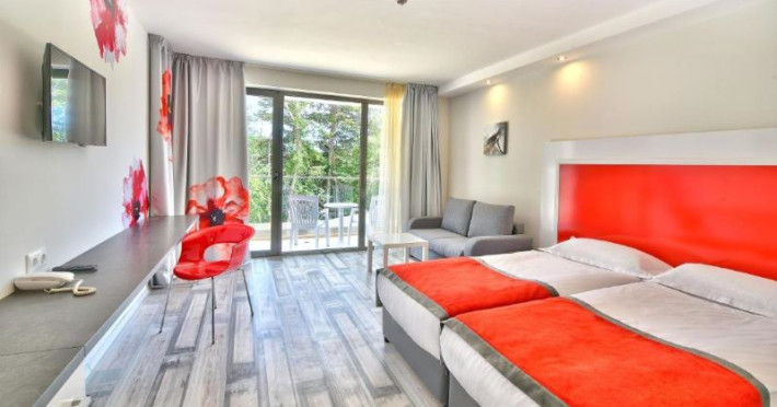 Foresta Grifid Hotel, situat într-un decor natural liniștit și împădurit, la o distanță de aproximativ 800 de metri de plajă, oferă o atmosferă de relaxare și liniște în mijlocul naturii. Cu o arhitectură cochetă și un ambient confortabil, acest hotel creează un refugiu plăcut pentru oaspeții săi, în care se pot bucura de fiecare moment al șederii lor. Dotările moderne și atenția acordată detaliilor completează atmosfera ospitalieră, garantând o experiență de cazare de neuitat.Facilități hotel