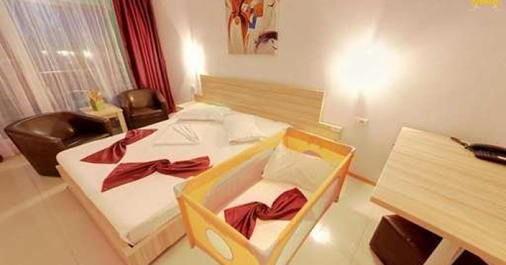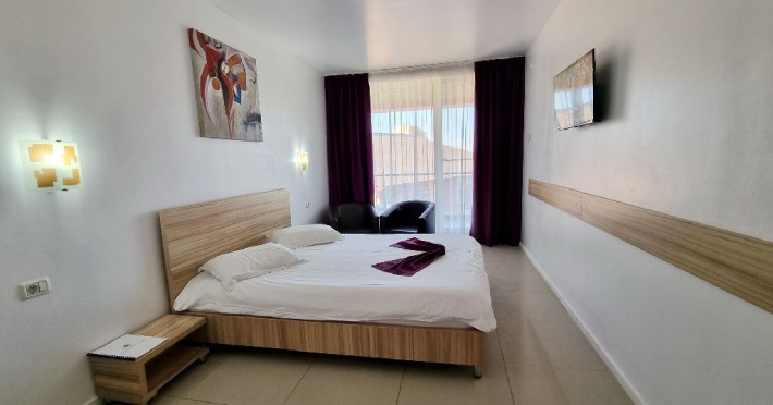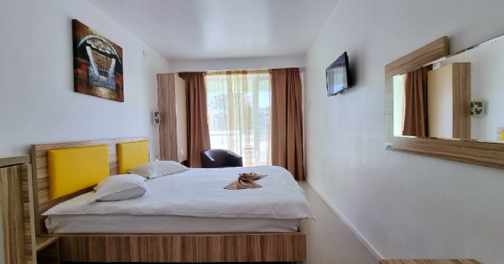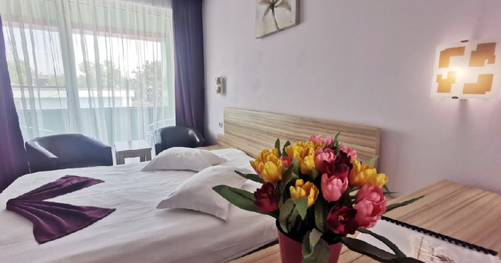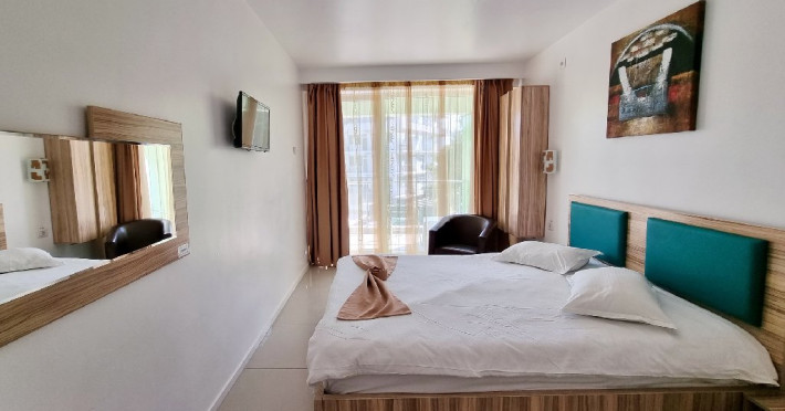 Facilitati camera dubla: pat matrimonial/pat twin (doua paturi); mobilier nou (sifonier, comoda, noptiera cu oglinda, demifotolii cu masuta); sistem de climatizare; telefon; televizor LCD cu televiziune prin cablu; minibar; pardoseala din gresie; baie proprie (mobilier, cabina de dus/cadita, uscator de par); balcon cu mobilier de balcon (masuta si scaune) si suport rufe; plasa de insecte; conexiune internet wireless.