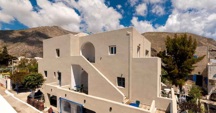Rooms for rent 50 meters from the black beach of Perissa, in shades of white blue and gray, equipped with basic equipment and balcony in each room.Rooms for rent 50 meters from the black beach of Perissa, in shades of white blue and gray, equipped with basic equipment and balcony in each room.