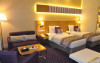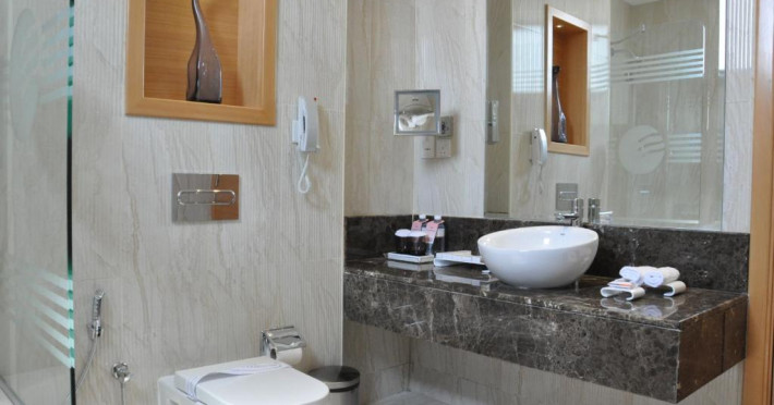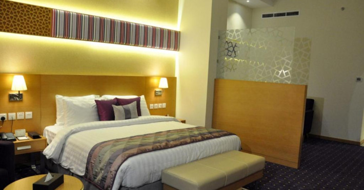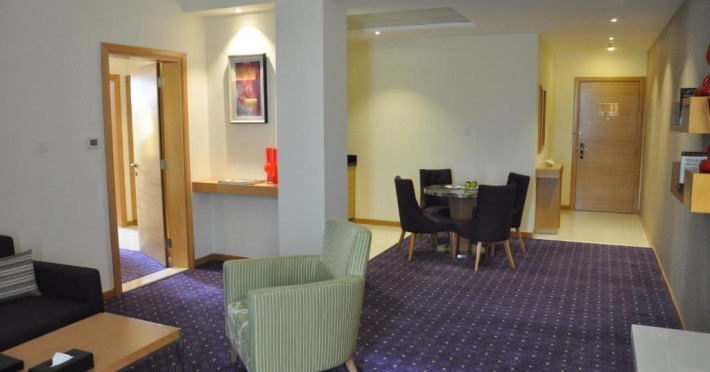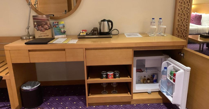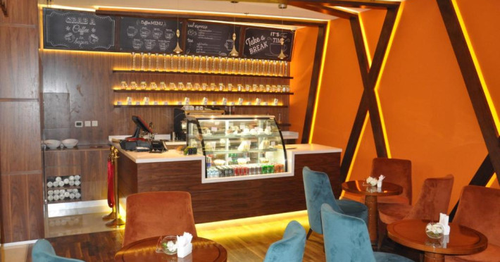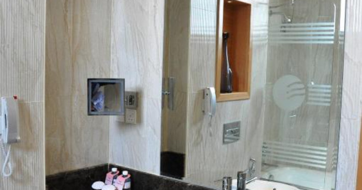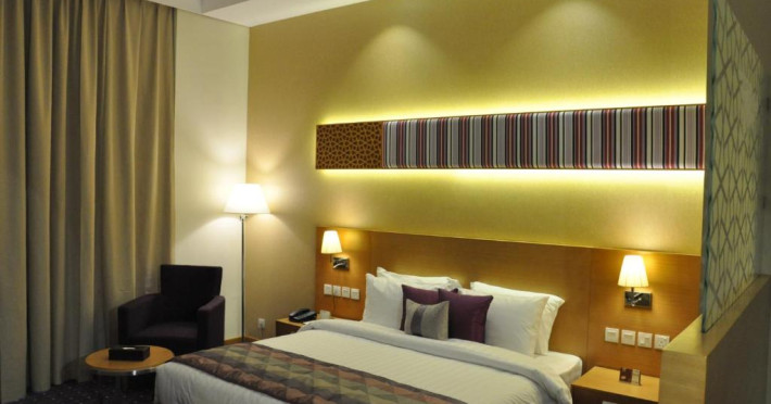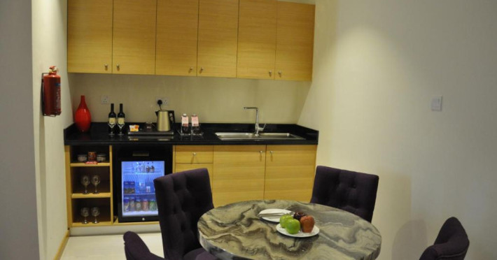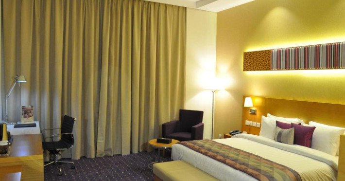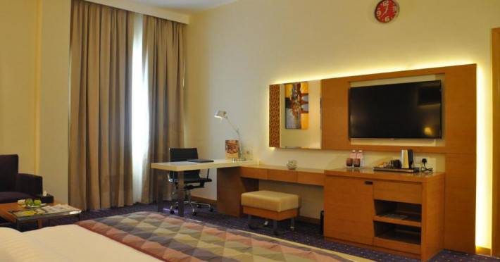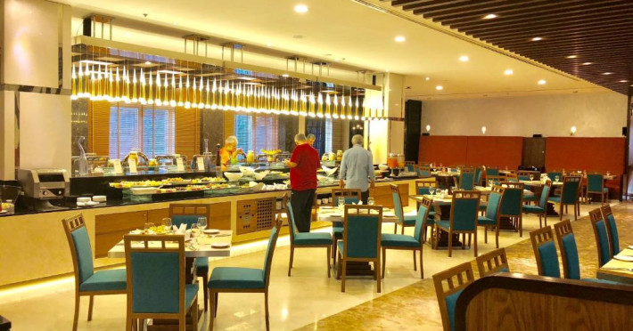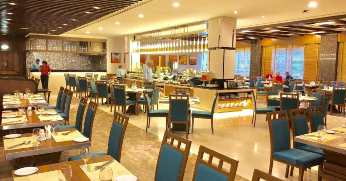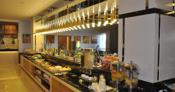 Dimineața este disponibil un mic dejun bogat tip bufet, care include ouă gătite la comandă. 24/7 servește meniu pan-asiatic seara. La hotel există un bar sportiv și un restaurant indian rafinat.