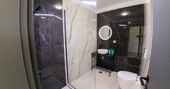 De asemenea, camerele au baie privata cu cabina de dus, al carei design se potriveste cu decorul intregii unitati de cazare.