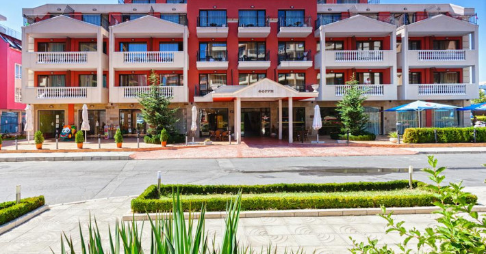 Amplasată în Sunny Beach, la 450 m de plaja Sunny, Forum este o proprietate de 4 stele care oferă o piscină în aer liber, terasă cu șezlonguri și umbrele de soare și unități de cazare cu aer condiționat. Proprietatea are servicii de recepție cu program non - stop și închirieri auto. Se oferă acces gratuit la internet Wi-fi în spațiile publice.