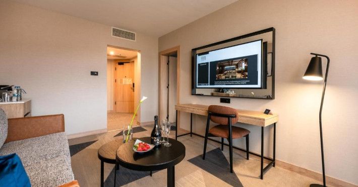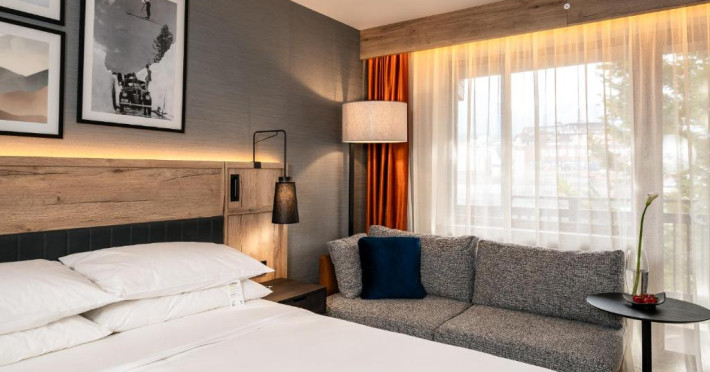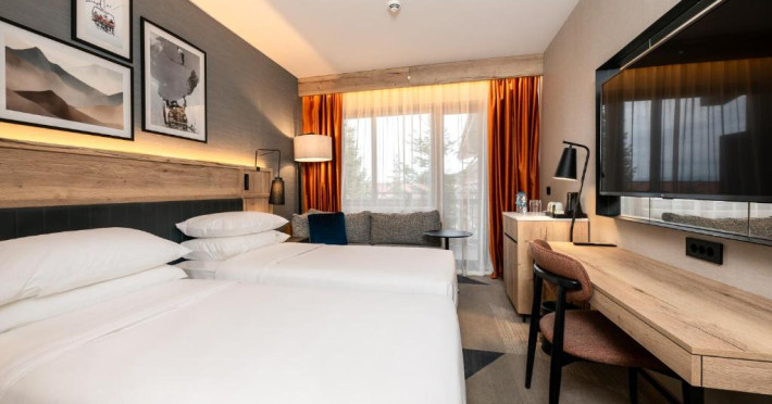 Camerele spațioase combină confortul specific brandului Sheraton cu elementele tradiționale bulgărești. Oaspeții beneficiază de centru spa cu piscină interioară incălzită, saună și zonă de fitness. Restaurantul principal servește preparate internaționale și specialități bulgărești, iar barul cu șemineu este locul ideal pentru o seară relaxantă.