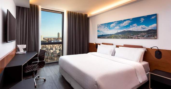 The air-conditioned hotel HOTEL FOUR POINTS BY SHERATON BARCELONA DIAGONAL has a 24h reception, a lobby bar, Wi-Fi, internet access, a lift as well as parking spaces. Furthermore, you can relax outdoors on a terrace. You can store your luggage in the hotel's storage room. To clean your clothes there is a laundry service. For your comfort there is a concierge service. For conventions and other business meetings, the hotel offers a business centre as well as a conference area (extra fee) with fax. Catering Your physical well-being is catered for by the cafeteria. Sports & Leisure Inside, a gym awaits your visit.The air-conditioned hotel HOTEL FOUR POINTS BY SHERATON BARCELONA DIAGONAL has a 24h reception, a lobby bar, Wi-Fi, internet access, a lift as well as parking spaces. Furthermore, you can relax outdoors on a terrace. You can store your luggage in the hotel's storage room. To clean your clothes there is a laundry service. For your comfort there is a concierge service. For conventions and other business meetings, the hotel offers a business centre as well as a conference area (extra fee) with fax. Catering Your physical well-being is catered for by the cafeteria. Sports & Leisure Inside, a gym awaits your visit.