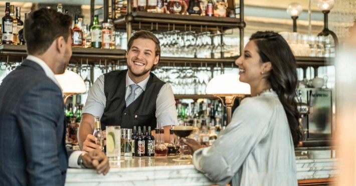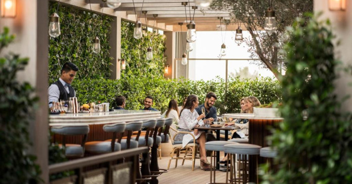 La Four Seasons Hotel Dubai International Financial Centre oaspeții au la dispoziție 3 restaurante unde pot savura mâncăruri delicioase à la carte. Preparate din bucătăria internațională așteaptă să fie degustate în fiecare zi. Masa poate fi servită atât în interior, cît si în aer liber, pe terasă, în funcție de vreme. Sunt disponibile 2 baruri unde oaspeții pot avea diverse băuturi răcoritoare sau alcoolice.
