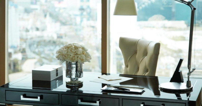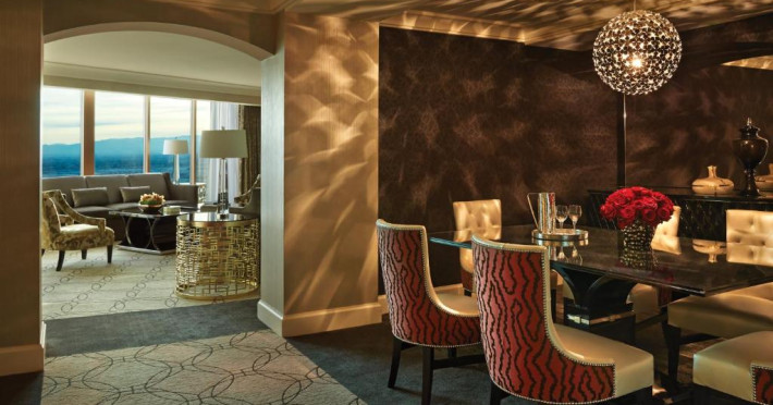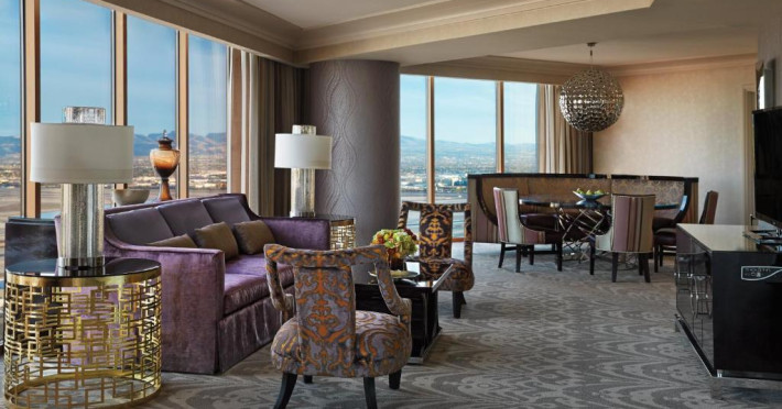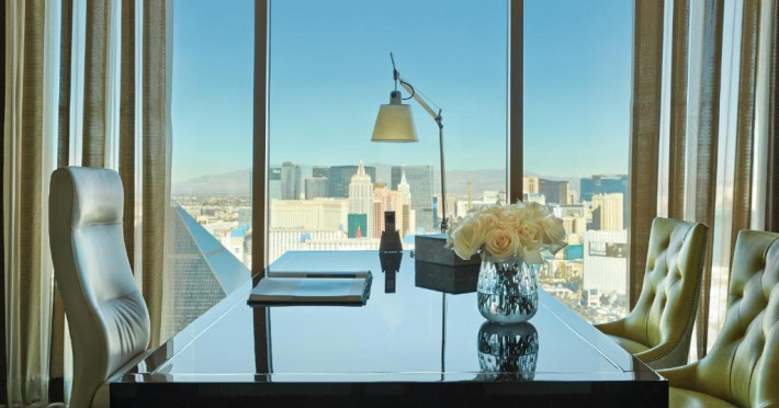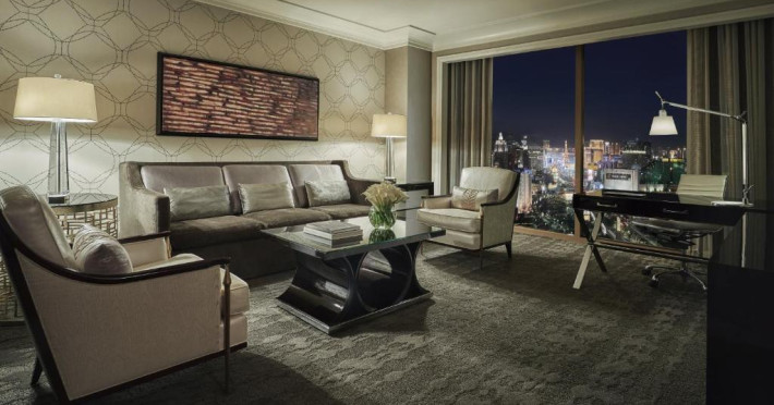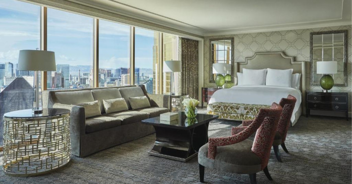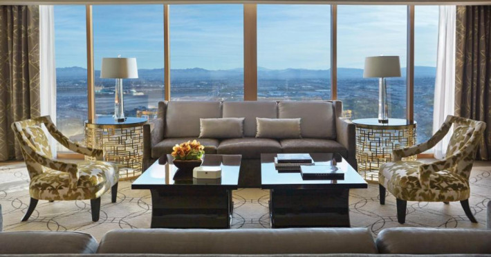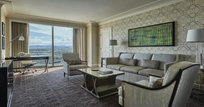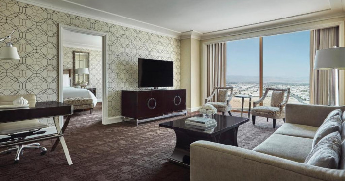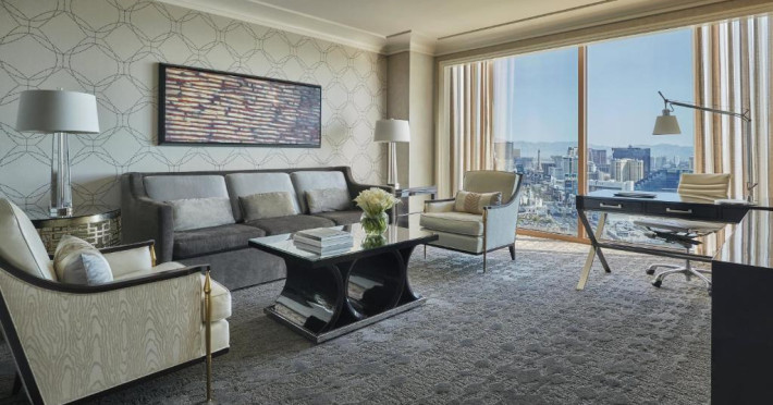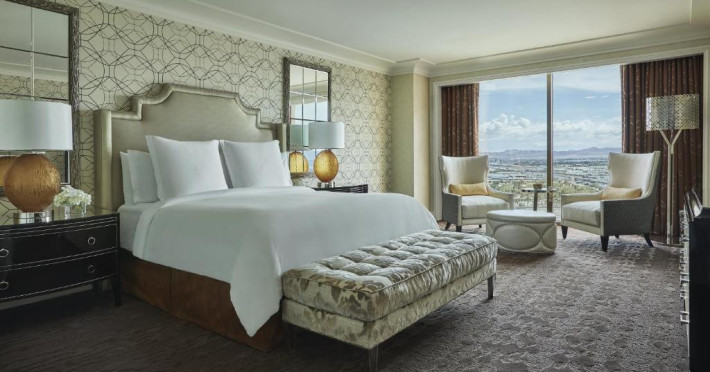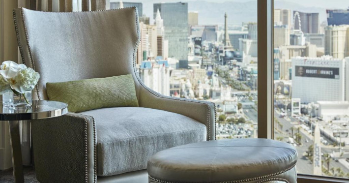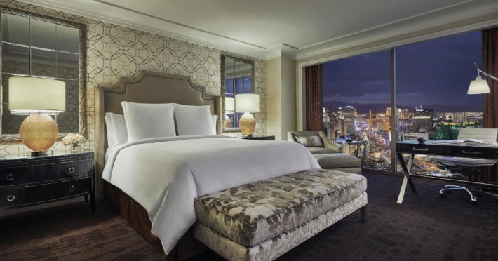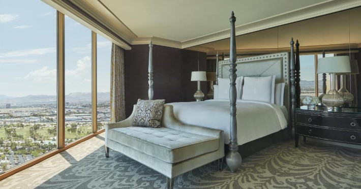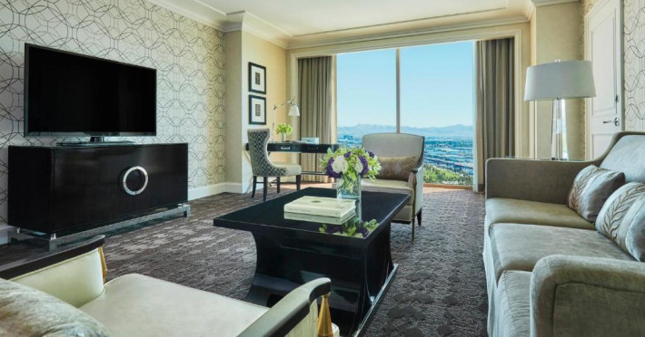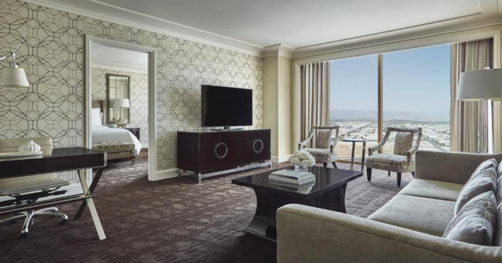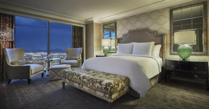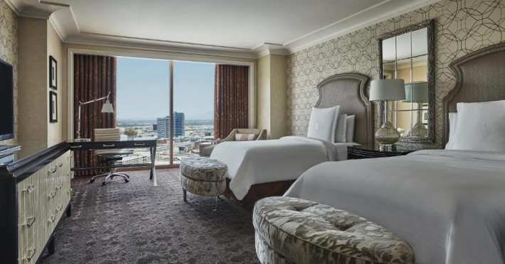 Camerele de la Four Seasons Hotel Las Vegas au ferestre din podea pană in tavan, TV cu ecran plat și baie cu marmură, de semnătură. Dotările includ un aparat de cafea.