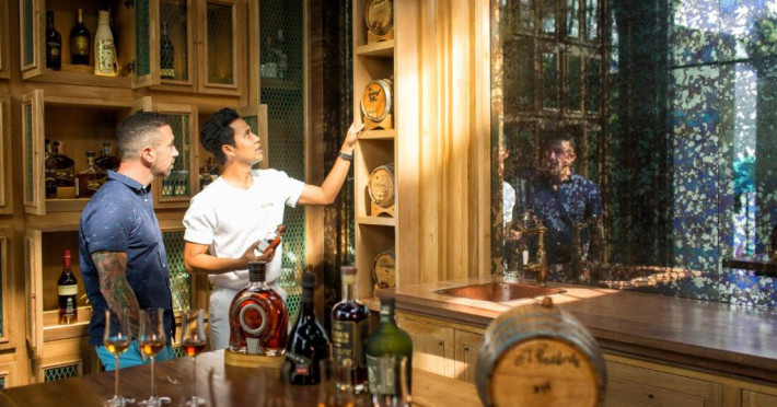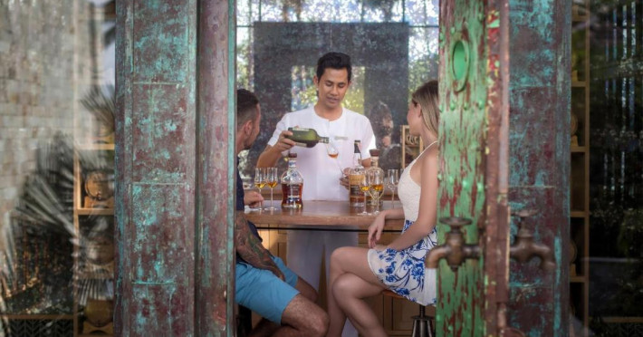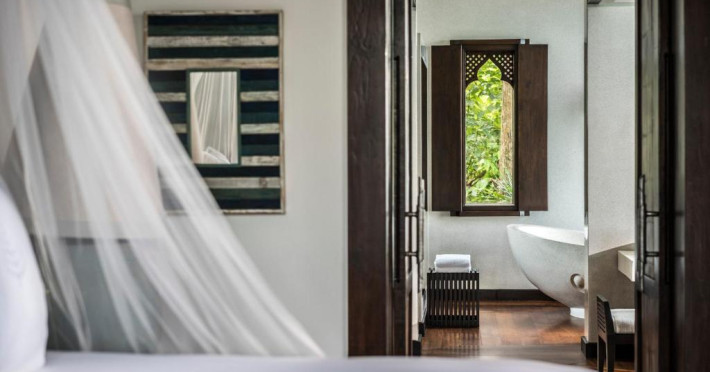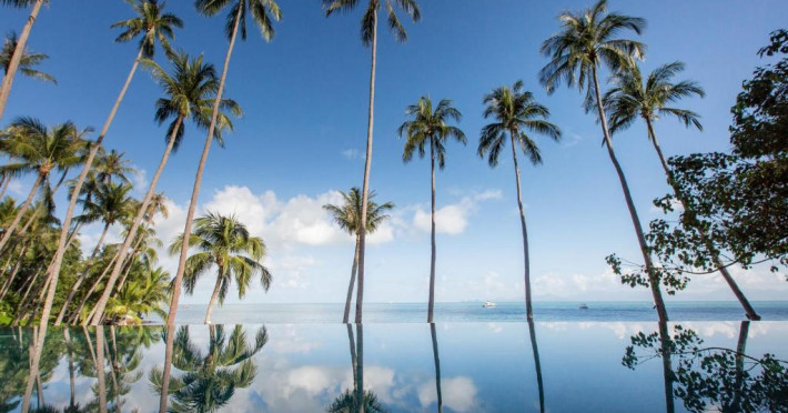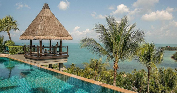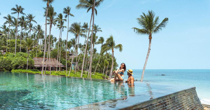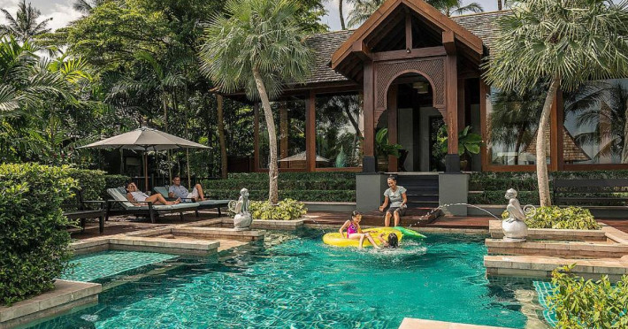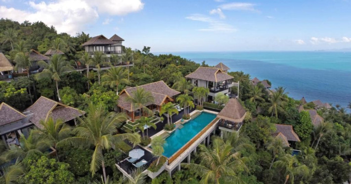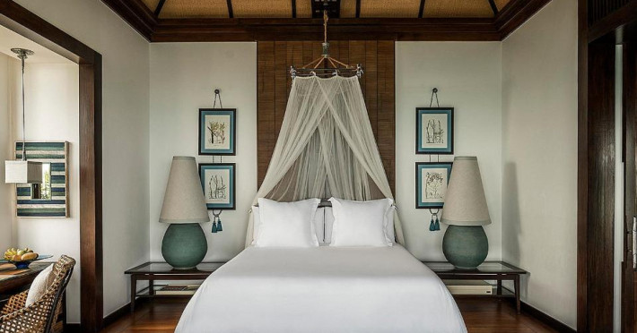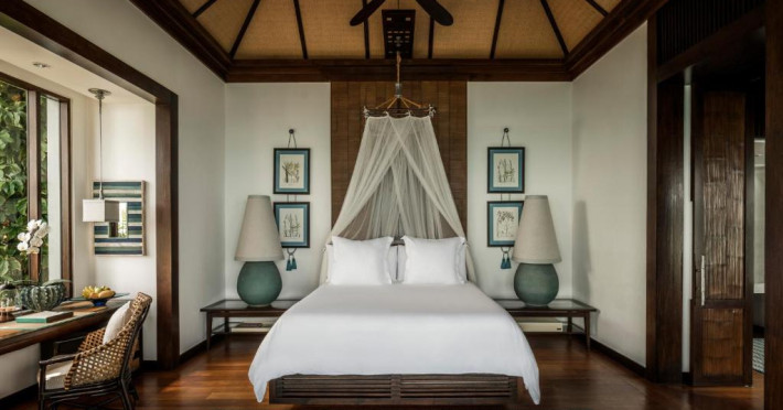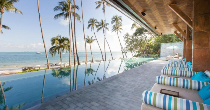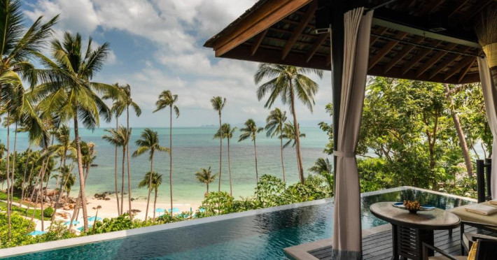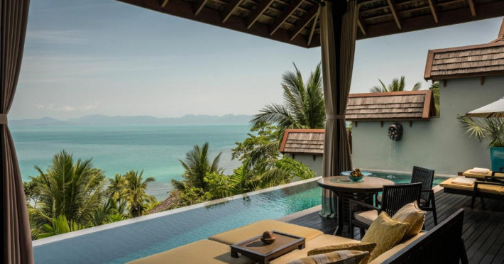 Fiecare cameră este dotată cu o piscină infinită privată, un bar privat si un iPod docking station. Oaspetii pot admira vederile la grădini sau la Golful Siam de pe canapeaua in aer liber. Usile din sticlă ale băii se deschid spre terasa la soare privată unde puteti să faceti plajă.