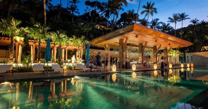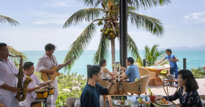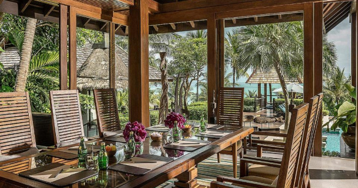 Restaurantul de la Four Seasons serveste fructe de mare locale, proaspete, asezonate cu ierburi exotice din grădinile din apropiere. Se oferă mancăruri din bucătăria thailandeză si internatională. Barul Beach serveste o varietate de cocktail-uri tropicale.