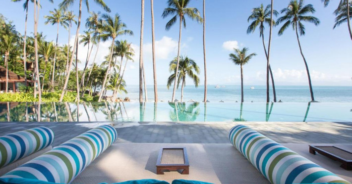 Prosoape răcite sunt oferite la piscina infinită de la malul mării de la Koh Samui Four Seasons. Oaspetii se pot destinde cu un joc de tenis, cu o varietate de sporturi pe plajă sau cu un antrenament la centrul de fitness. Se oferă o bibliotecă mare de cărti si DVD-uri.