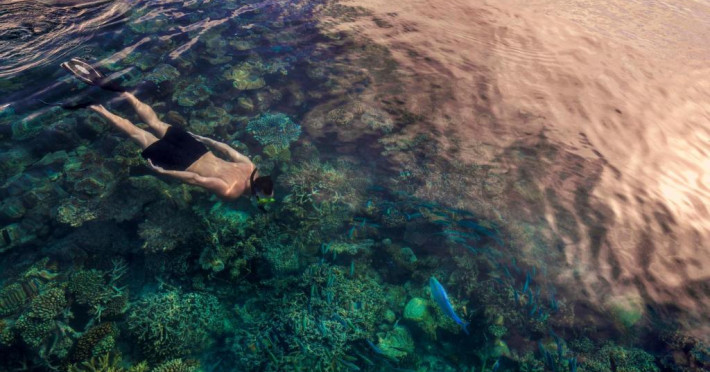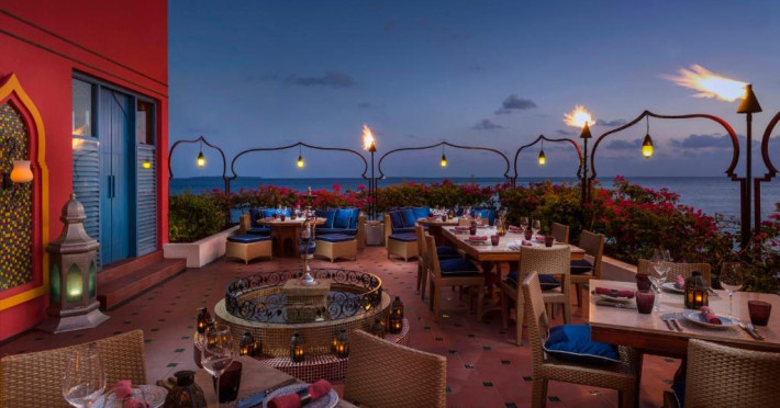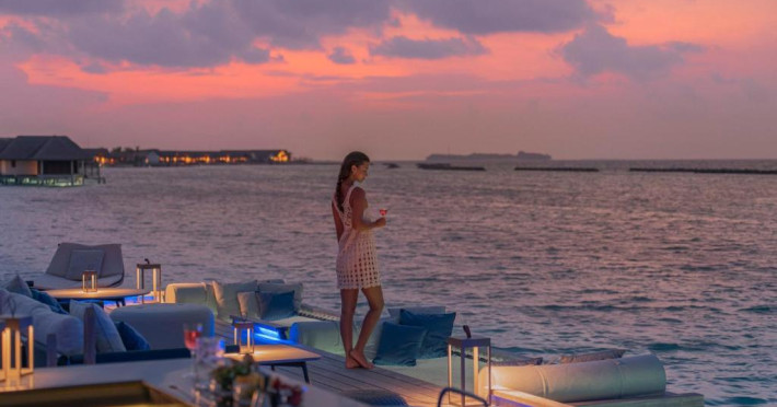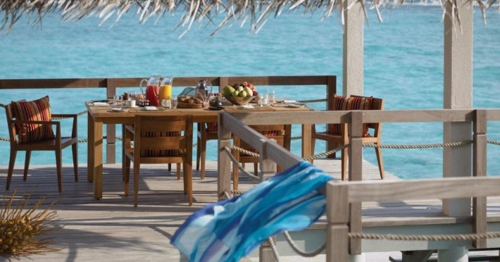 Experiența culinară este asigurată de patru restaurante care servesc preparate italiene, asiatice, arabe și internaționale. Resortul oferă activități precum snorkeling cu mantas, croaziere la apus, sporturi acvatice și programe educaționale despre viața marină.