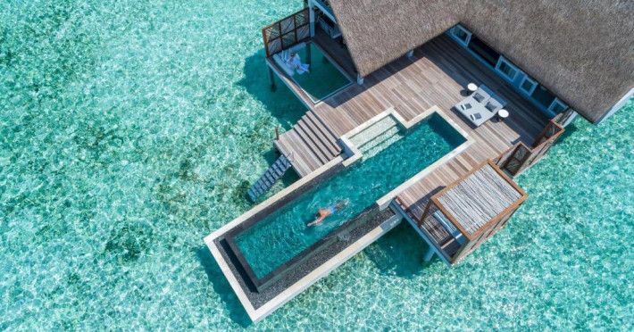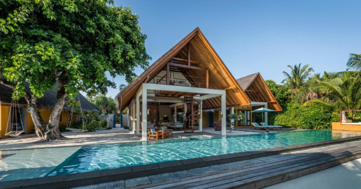 Vilele și suitele, fie pe plajă, fie suspendate deasupra apei, imbină perfect eleganța contemporană cu arhitectura tradițională maldiveză. Facilitățile de top includ patru piscine, un centru spa ayurvedic, centru de scufundări PADI și un centru de conservare marină.