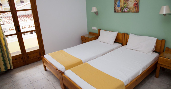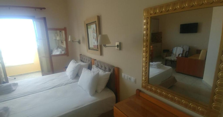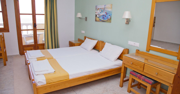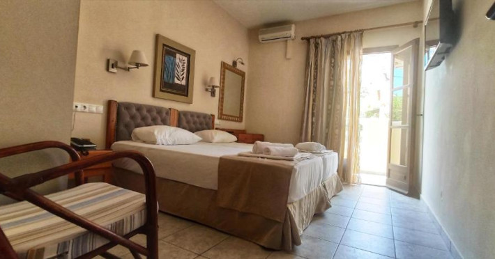 In camere există un aparat de aer condiționat. De la balconul sau de pe terasa care se găsesc in majoritatea camerelor, clienții au vedere spre mare. Camerele au un pat dublu sau o canapea. Sunt disponibile dormitoare separate. In plus, pentru cei mici sunt disponibile paturi pentru copii. Lucrurile de valoare pot fi păstrate in siguranță intr-un seif. Datorită unui frigider, unui minifrigider, unui aragaz și unui aparat pentru cafea/ceai, chicineta este bine echipată pentru cei ce se aprovizionează singuri. In plus, există un telefon, un televizor și WiFi (gratuit). In baia dotată cu un duș și o cadă există un uscător de păr.
