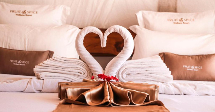 Fruit & Spice Wellness Resort Zanzibar este un refugiu luxos de 5 stele situat in pitorescul sat Kizimkazi, in partea de sud a insulei Zanzibar. Resortul se intinde pe o proprietate generoasă cu grădini tropicale și oferă acces direct la plaja privată cu nisip alb și fin.