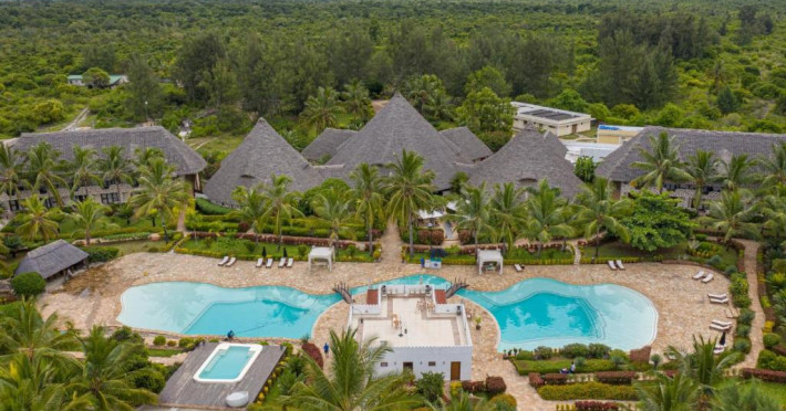 Resortul excelează prin facilitățile sale wellness, incluzand un centru spa cu tratamente tradiționale africane, piscină infinity cu vedere panoramică spre ocean și un centru de fitness modern. Restaurantul principal servește preparate fusion care imbină aromele locale cu bucătăria internațională, punand accent pe fructe de mare proaspete și condimente zanzibareze.
