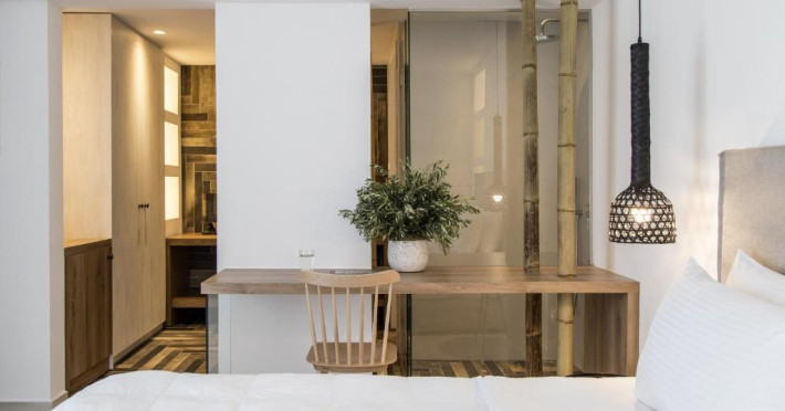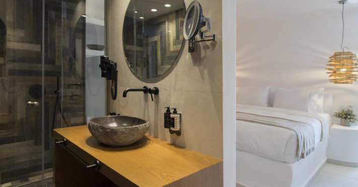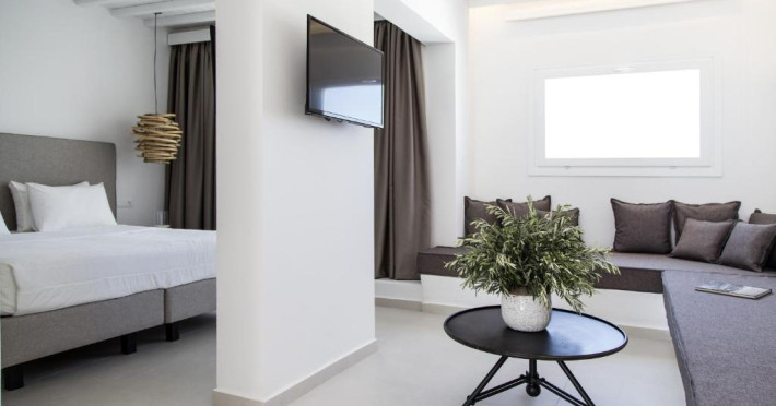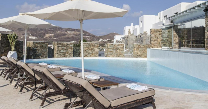 Ftelia Bay este o proprietate de 4 stele care se află în Ftelia (Mykonos), la o distanță de 950 m de plaja Ftelia și oferă piscină în aer liber, cu șezlonguri și umbrele de soare, precum și un centru spa care asigură servicii pentru un sejur extrem de relaxant. Facilitățile de la Ftelia Bay includ sală de fitness și business center. Proprietatea are, de asemenea, servicii de recepție cu program non - stop, concierge și închirieri auto. Se oferă acces gratuit la internet Wi-fi în spațiile publice.