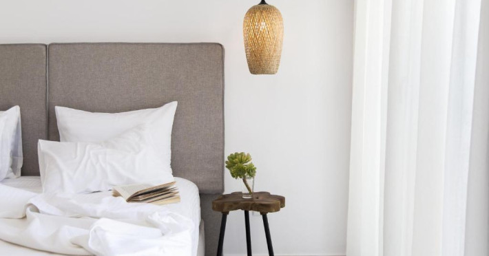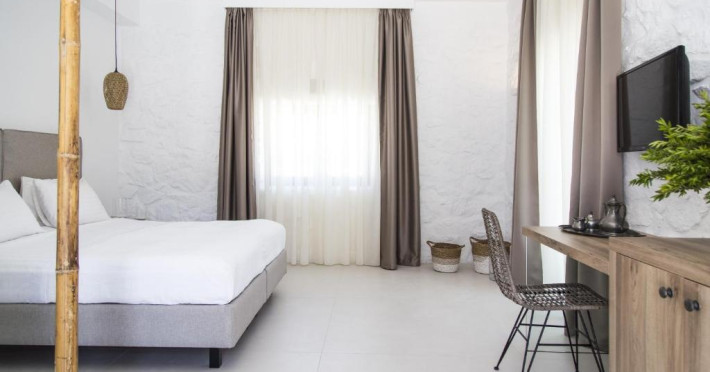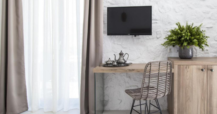 Camerele de la Ftelia Bay sunt prevăzute cu seif. Oaspeții au la dispoziție serviciul de room service pentru a servi masa sau diverse băuturi. Oaspeții au acces gratuit la serviciul Wi-fi în camere. Curățenia in cameră se face zilnic. Proprietatea oferă camere pentru familie cu o suprafață mai mare și un număr mai mare de paturi față de cele standard. Se pot rezerva de asemenea camere pentru nefumători.