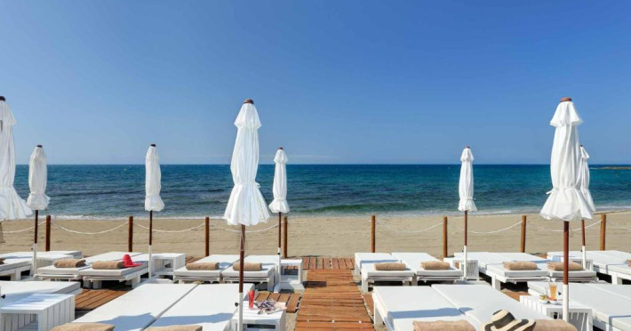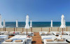 Pe plajă există șezlonguri și umbrele de plajă contra cost.