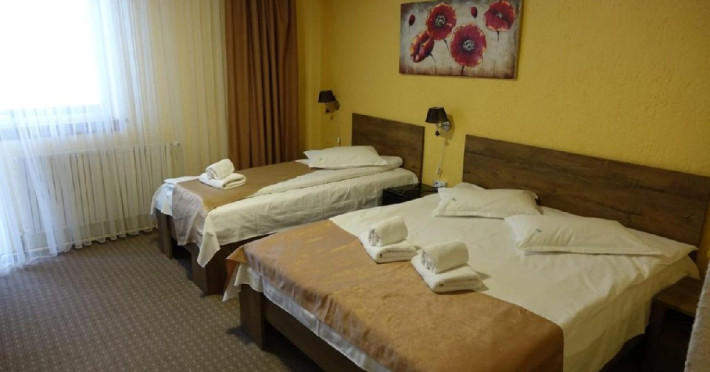 Camera tripla - suprafata 18 mp, dotata cu pat matrimonial si un pat single.Toate camerele triple dispun de balcon.