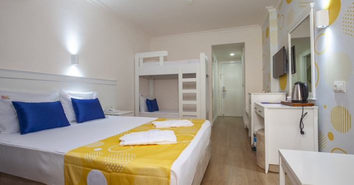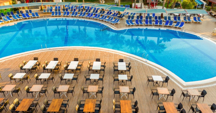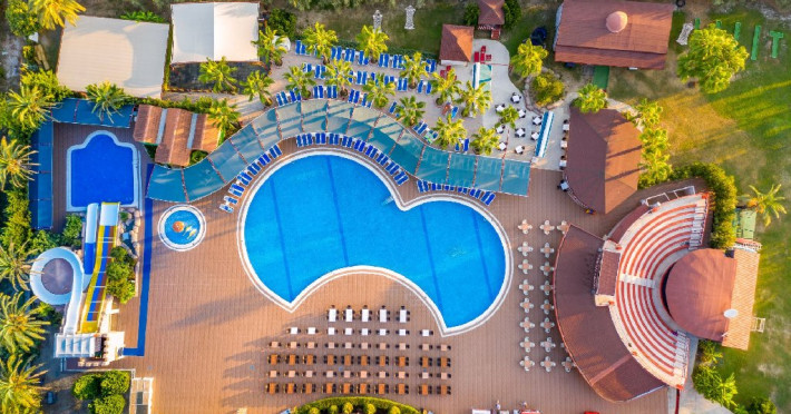 Facilitati hotel: Oaspetii pot beneficia de restaurant, baruri, piscine exterioare, piscina interioara, sezlonguri si umbrele, sala fitness, centru spa, programe de animatie, mini golf, mini fotbal, biliard, tenis de masa, piscina pentru copii, tobogane, miniclub.
