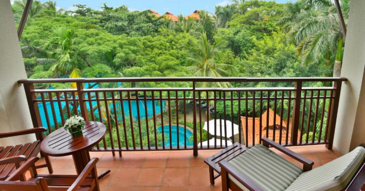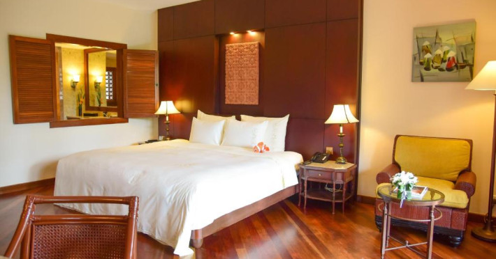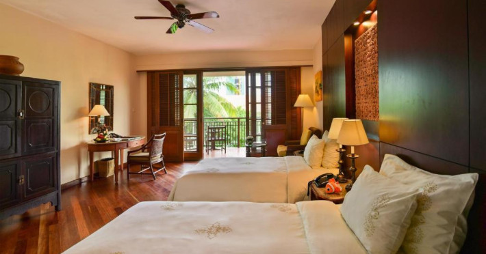 Amenajate cu gust, camerele spațioase, cu aer condiționat, au balcon privat cu vedere tropicală. Acestea sunt dotate cu podea din lemn și covoare elegante și au dressing, spațiu mare de relaxare și băi mari din marmură.