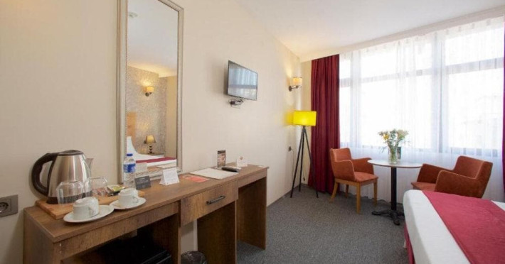 Pamper yourself with onsite body treatments and facials. This hotel also features complimentary wireless internet access and concierge services.. Featured amenities include dry cleaning/laundry services, a 24-hour front desk, and luggage storage. A roundtrip airport shuttle is provided for a surcharge (available 24 hours)..Optional fees: Fee for buffet breakfast: approximately EUR 10 for adults and EUR 5 for children Airport shuttle fee: EUR 100 per vehicle (roundtrip, maximum occupancy 4) Pet fee: EUR 30 per accommodation, per day Rollaway bed fee: EUR 30.0 per day The above list may not be comprehensive. Fees and deposits may not include tax and are subject to change. . Policies: Reservations are required for spa treatments. Reservations can be made by contacting the hotel prior to arrival, using the contact information on the booking confirmation. Cashless payment methods are available for all transactions. Contactless check-in and contactless check-out are available. . Instructions: Extra-person charges may apply and vary depending on property policy Government-issued photo identification and a credit card, debit card, or cash deposit may be required at check-in for incidental charges Special requests are subject to availability upon check-in and may incur additional charges; special requests cannot be guaranteed The name on the credit card used at check-in to pay for incidentals must be the primary name on the guestroom reservation This property accepts credit cards, debit cards, and cash This property reserves the right to pre-authorize the guest's credit card prior to arrival. Cashless transactions are available . Special instructions: This property offers transfers from the airport (surcharges may apply). Guests must contact the property with arrival details before travel, using the contact information on the booking confirmation. Front desk staff will greet guests on arrival at the property.. Minimum age: 18. Check in from: 2:00 PM. Check in to: anytime. . Check out: 12:00 PM.Pamper yourself with onsite body treatments and facials. This hotel also features complimentary wireless internet access and concierge services.. Featured amenities include dry cleaning/laundry services, a 24-hour front desk, and luggage storage. A roundtrip airport shuttle is provided for a surcharge (available 24 hours)..Optional fees: Fee for buffet breakfast: approximately EUR 10 for adults and EUR 5 for children Airport shuttle fee: EUR 100 per vehicle (roundtrip, maximum occupancy 4) Pet fee: EUR 30 per accommodation, per day Rollaway bed fee: EUR 30.0 per day The above list may not be comprehensive. Fees and deposits may not include tax and are subject to change. . Policies: Reservations are required for spa treatments. Reservations can be made by contacting the hotel prior to arrival, using the contact information on the booking confirmation. Cashless payment methods are available for all transactions. Contactless check-in and contactless check-out are available. . Instructions: Extra-person charges may apply and vary depending on property policy Government-issued photo identification and a credit card, debit card, or cash deposit may be required at check-in for incidental charges Special requests are subject to availability upon check-in and may incur additional charges; special requests cannot be guaranteed The name on the credit card used at check-in to pay for incidentals must be the primary name on the guestroom reservation This property accepts credit cards, debit cards, and cash This property reserves the right to pre-authorize the guest's credit card prior to arrival. Cashless transactions are available . Special instructions: This property offers transfers from the airport (surcharges may apply). Guests must contact the property with arrival details before travel, using the contact information on the booking confirmation. Front desk staff will greet guests on arrival at the property.. Minimum age: 18. Check in from: 2:00 PM. Check in to: anytime. . Check out: 12:00 PM.