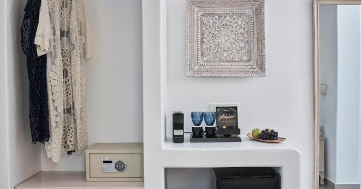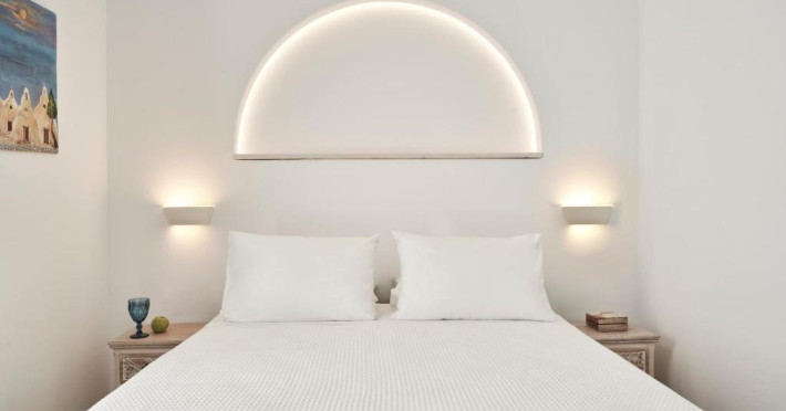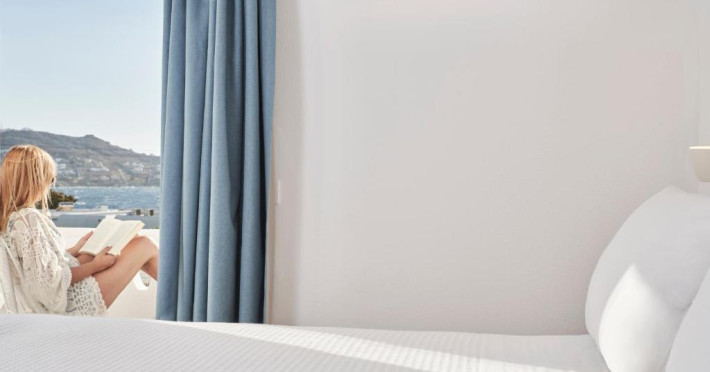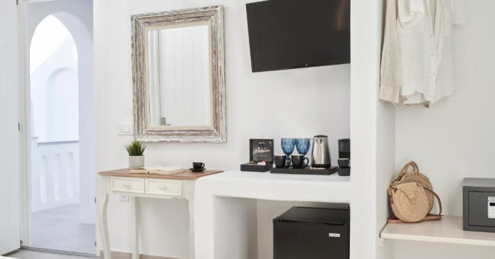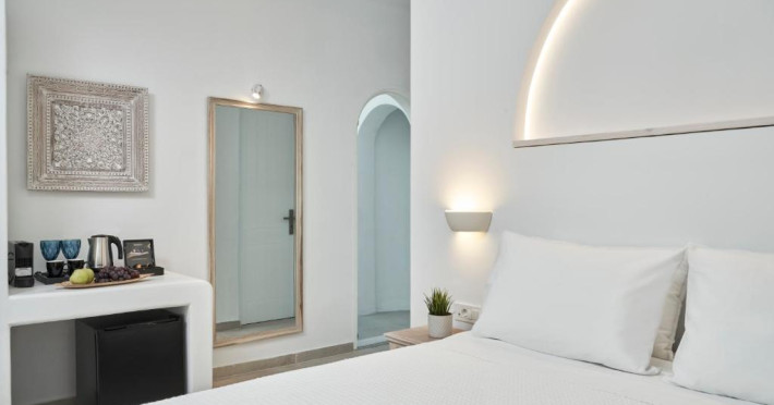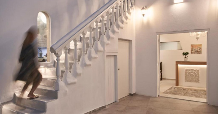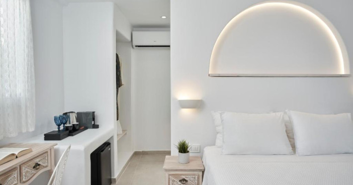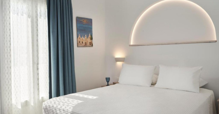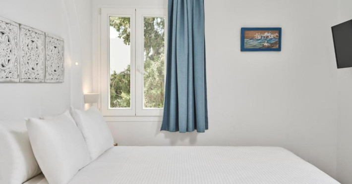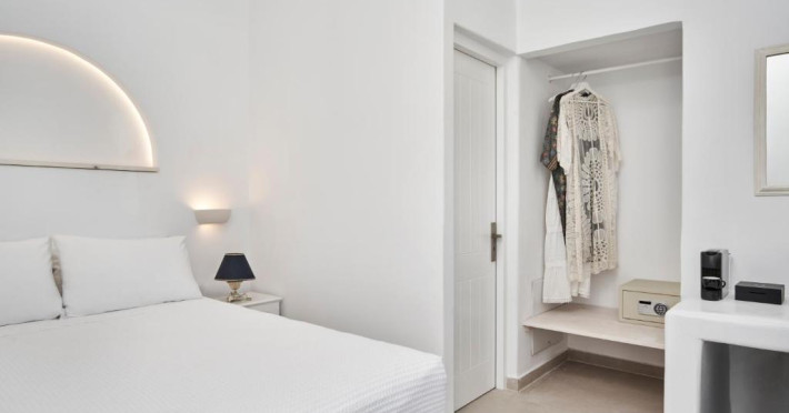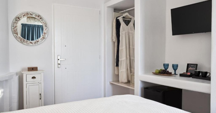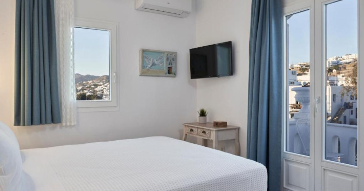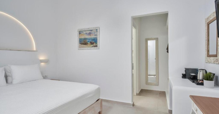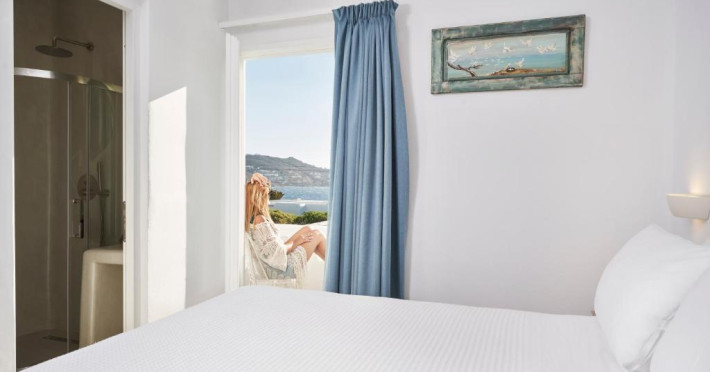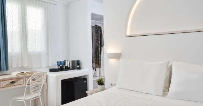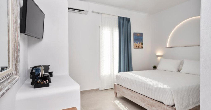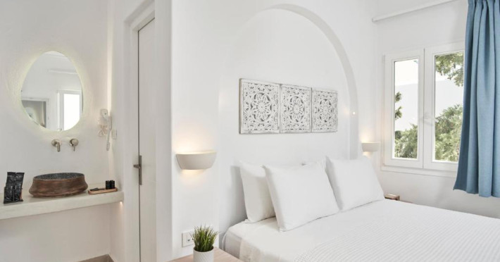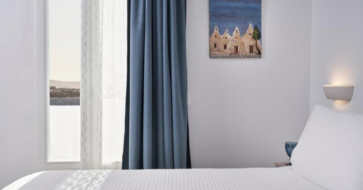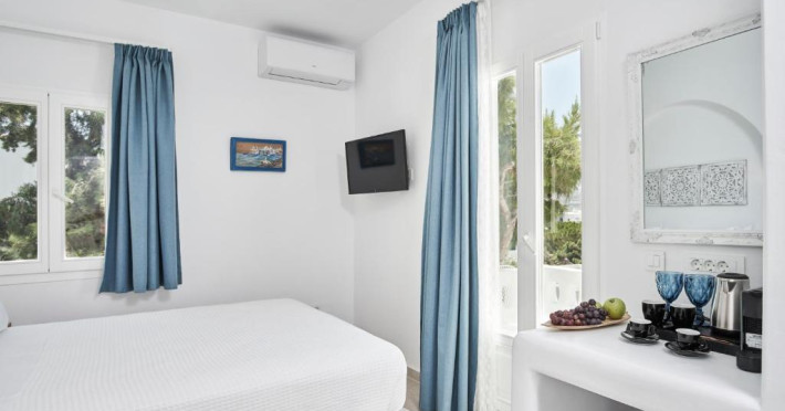 Poziționarea centrală vă permite să explorați cu ușurință celebrele străduțe albe ale orașului Mykonos, cu magazine elegante și taverne tradiționale. Micul dejun continental servit pe terasa cu vedere panoramică este modul ideal de a incepe o zi in Mykonos.
