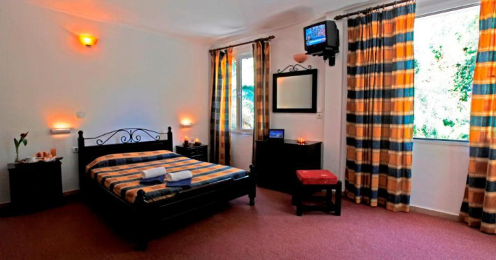Hotel Galaxias is located in a lush green environment, 200 meters from the beach of Gouvia, and offers beautifully furnished rooms, a swimming pool and a restaurant serving buffet meals. Rooms at Galaxias are decorated in an earthly colour pallet and feature all the necessary amenities (Air Condition on extra charge). Guests can enjoy breakfast in the hotels restaurant and later in the day relax with a drink from the bar in the stylishly decorated lounge or by the pool. The property is 1 km away the from the Gouvia Marina and 7 km from the gorgeous old town of Corfu with its numerous restaurants and shops . Free WiFi in public areas and free private parking are provided. Front desk operation: 08:00 23:00Hotel Galaxias is located in a lush green environment, 200 meters from the beach of Gouvia, and offers beautifully furnished rooms, a swimming pool and a restaurant serving buffet meals. Rooms at Galaxias are decorated in an earthly colour pallet and feature all the necessary amenities (Air Condition on extra charge). Guests can enjoy breakfast in the hotels restaurant and later in the day relax with a drink from the bar in the stylishly decorated lounge or by the pool. The property is 1 km away the from the Gouvia Marina and 7 km from the gorgeous old town of Corfu with its numerous restaurants and shops . Free WiFi in public areas and free private parking are provided. Front desk operation: 08:00 23:00