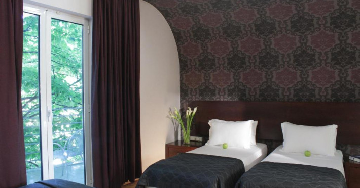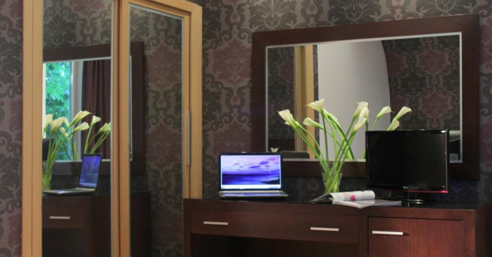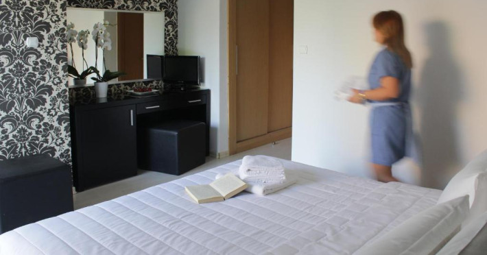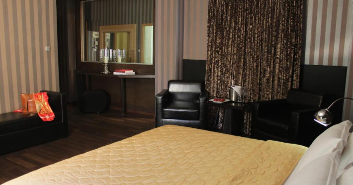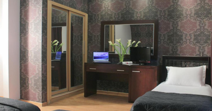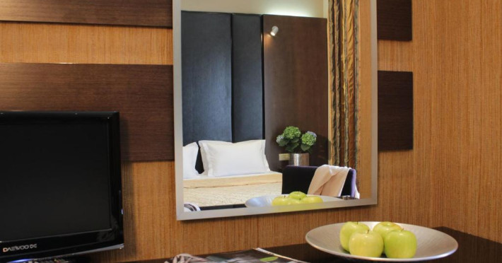 Fiecare cameră are un balcon cu vedere la oraș sau la munte, birou și frigider cu 2 sticle gratuite de apă minerală. Unele unități includ o cadă spa.