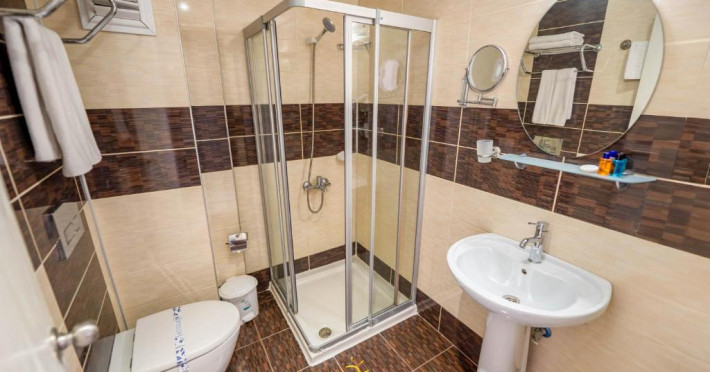 Cazare confortabilă: Camerele oferă aer condiționat, balcoane, băi private și vedere la mare. Oaspeții beneficiază de articole de toaletă gratuite, minibaruri și izolare fonică pentru un sejur confortabil.