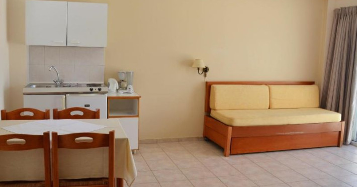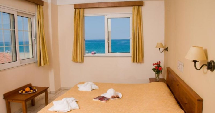 Hotelul este înconjurat de grădini, oferind o atmosferă primitoare, pe lângă ospitalitatea sinceră cretană. Toate apartamentele sunt decorate tradițional şi au balcon cu vedere la grădină sau la mare.Descriere hotel