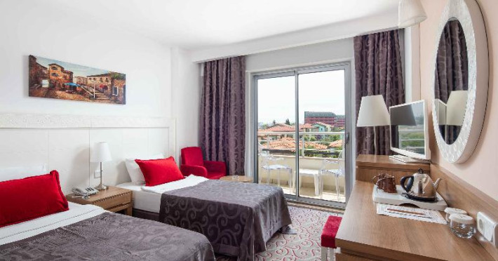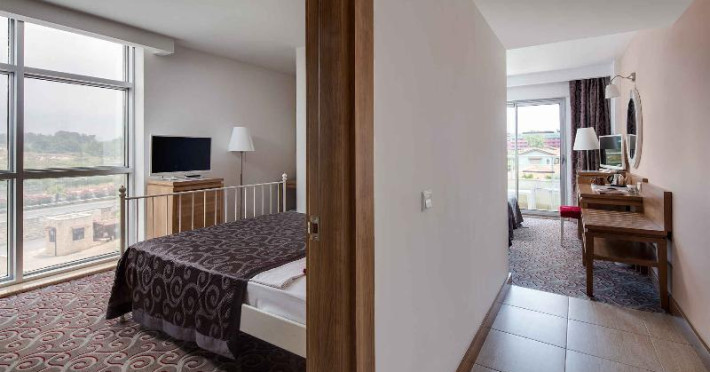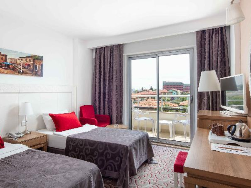 Guests have a choice of 270 rooms, including 8 junior suites, 22 suites and 223 double rooms, located in a 5-storey main building and a 3-storey auxiliary building. Multilingual staff (English, German, French) at the reception are happy to assist guests at the reception desk round the clock. Check-in and check-out are available 24 hours a day. Services such as a baggage storage service, a safe and a currency exchange service ensure a comfortable stay. Wireless internet access allows guests to stay connected while on holiday. The tour desk offers assistance with booking excursions. The resort offers various facilities for guests with disabilities. A lift and wheelchair-accessible facilities are available. A number of shops, including a supermarket, are great for shopping or just browsing. The grounds of the resort feature a playground and a lovely garden. Additional amenities include a newspaper stand, a TV room, a playroom and a library. Guests arriving by car can park their vehicles in the car park. Other services include a childcare service, a car hire service, medical assistance, a transfer service, room service (for a fee), a laundry service, a hairdresser, a coin-operated laundry, a hotel doctor and a hotel shuttle bus. The business centre is on hand for guests business requirements and provides a fax machine.Datorita dinamicitatii domeniului disponibilitatea ofertelor se modifica de la un moment la altul. De aceea ofertele sunt valabile in limita locurilor disponibile. Agentia nu este responsabila pentru eventualele neconcordante care pot aparea intre informatiile privind tarifele si alte detalii din site si informatiile primite in agentie. In aceste cazuri vor avea prioritate, intotdeauna, informatiile primite in agentie.