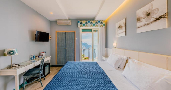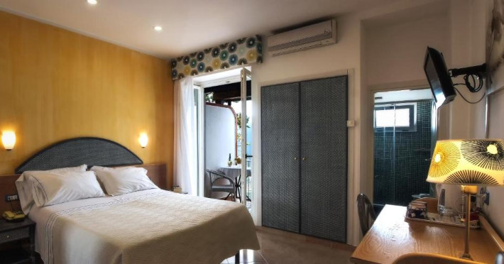 Decorate in nuante relaxante de albastru, camerele au aer conditionat, TV LCD, acces gratuit la internet WiFi si baie privată cu halat si uscător de păr. Unele se bucură de vedere partială la Marea Mediterană.