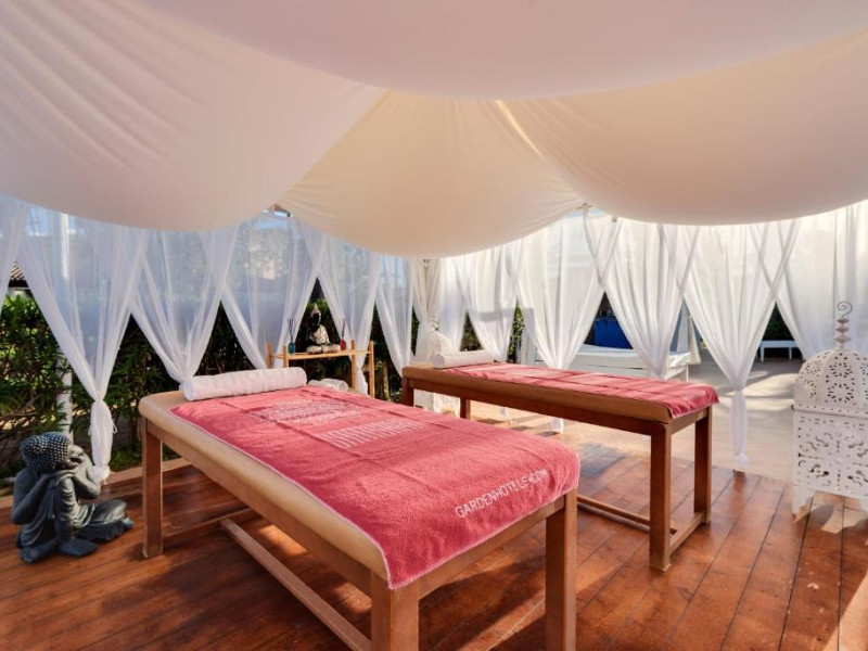 Restaurantul hotelului servește preparate mediteraneene autentice, iar barul de la piscină oferă cocktailuri rafinate și gustări ușoare pe tot parcursul zilei. Plaja cu nisip fin se află la doar cațiva pași de hotel, făcand din Garden Saladina o alegere excelentă pentru vacanțe relaxante la malul mării.