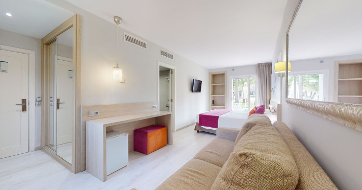 Around 750 m from a public sandy beach lies the hotel Garden Saladina Hotel Adults Only. The nearest restaurants and bars can be found within 300 m. The city centre is around 1 km away. The nearest shops you can reach within around 300 m. The beach is awarded a blue flag. Here, there are cushions and sun umbrellas for a fee available. Cold drinks are served at the bar on the beach. The hotel has a reception, a lobby, Wi-Fi as well as parking spaces. In the outdoor area you will find a garden as well as a pool that is open seasonally, where you can rent pool towels for a fee and sun loungers and sun umbrellas are available for free. Furthermore, you can relax outdoors on the sun terrace. You can store your luggage in the hotel's storage room. There is also a laundry service available at an additional cost to customers. If necessary, you can contact the medical centre (for a fee). The energy supply is 220 Volts. If you want to explore the holiday region, you can use the car rental service close to the hotel (extra fee). Pets like cats and dogs are allowed in the hotel (for a fee). In your hotel, a lot of focus is placed on sustainability. This includes the hotel`s own recycling bins, a central room air-conditioning and environmentally-friendly cleaning. American Express, Euro/Master Card and Visa are accepted as means of payment. Due to its barrier-free facilities , such as barrier-free entrances and wheelchair accessible rooms, the hotel is also suitable for wheelchair users. Catering As catering services the hotel offers half board. Breakfast is offered continental or from the buffet. Dinner is also served as a buffet. When booking all-inclusive, one welcome drink is included. In the gastronomic area also vegetarian and gluten-free dishes are served. For dinner, guests are asked to wear appropriate clothing in the restaurant. Distances