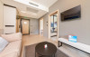 Facilități cameră dublă: pat matrimonial sau twin, baie proprie cu cadă sau duș, aer condiționat, televizor, telefon, minibar (contra cost), seif (contra cost).