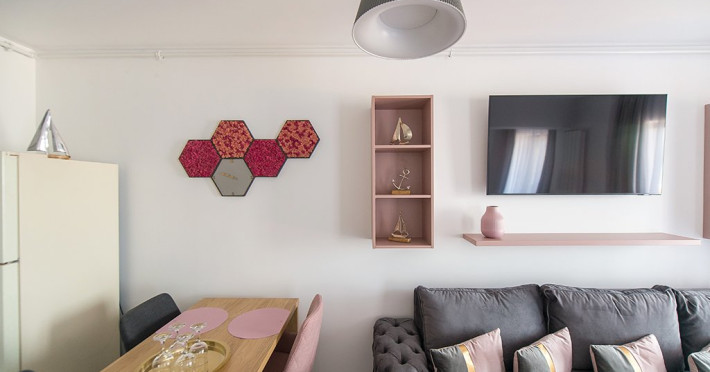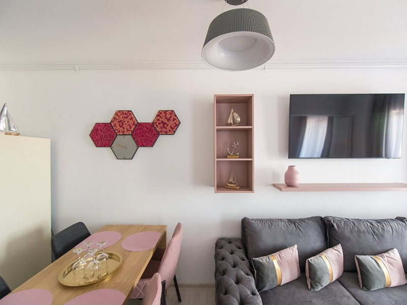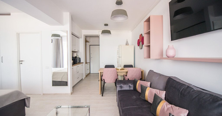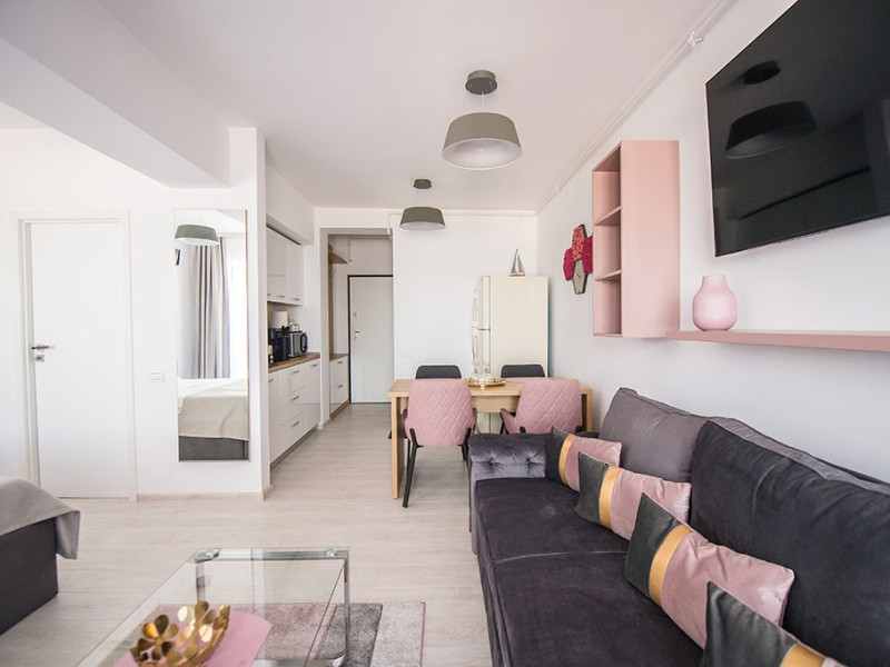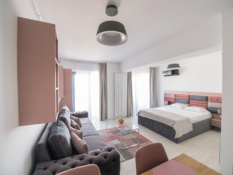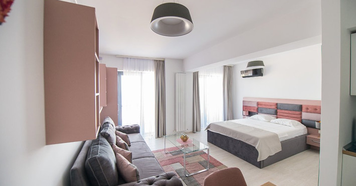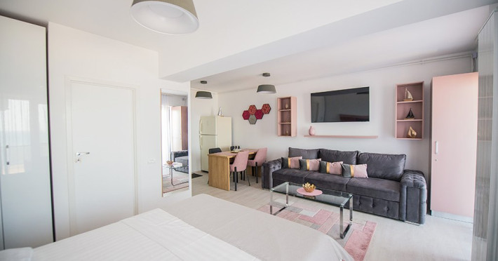 Studio-ul este mobilat si utilat modern, cu un decor primitor si luminozitate naturala, amplasat intr-un cadru relaxant, cu vedere directa la marea albastra.