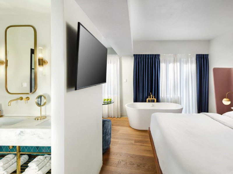 Acest hotel pune la dispoziția oaspeților camere cu aer condiționat, birou, cafetieră, un minibar, cutie de valori, televizor cu ecran plat și baie proprie cu duș. Baia proprie oferă articole de toaletă gratuite. La Gatsby Athens, fiecare cameră oferă lenjerie de pat și prosoape.