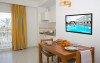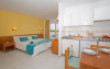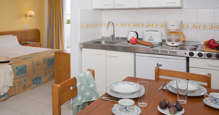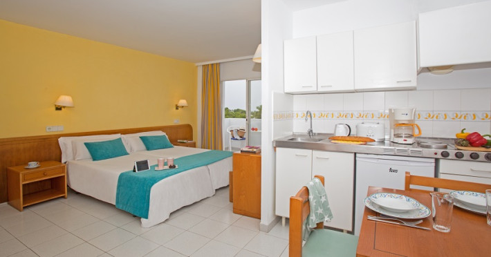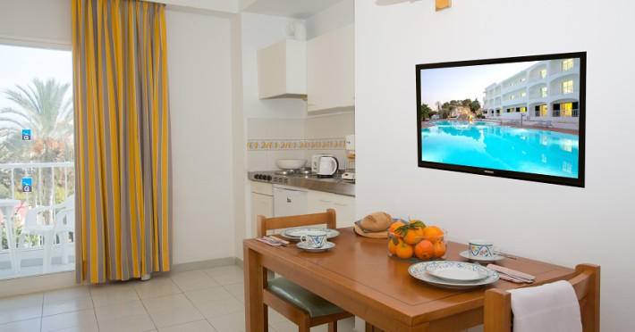 The apart hotel GAVIMAR ARIEL/CHICO CLUB RESORT is located approx. 100 m from a sandy beach. The nearest restaurants and bars can be reached in a few minutes on foot. Shops are right on your doorstep, a supermarket is around 500 m away. There is a shuttle between the hotel and the airport (for a fee). In the surrounding a disco (approx. 500 m away), an aqua park (approx. 60 km), a theatre (approx. 20 km), a cinema (approx. 20 km) and a golf course (approx. 10 km) offer entertainment during the best time of the year. The beach is patrolled by a lifeguard and awarded a blue flag. Here, there are beach towels for a fee available. The air-conditioned hotel has a 24h reception (check-in is possible around the clock), a lobby bar, Wi-Fi, a lift, a first aid kit, parking spaces (for a fee) as well as a TV lounge with satellite TV. In the outdoor area you will find a garden as well as a seasonally open pool (open all year), where you can rent pool towels for a fee and sun loungers and sun umbrellas are available for free. There is also a children's pool. Furthermore, you can relax outdoors on the sun terrace. You can store your valuables in the safe (extra fee), and your luggage in the hotel`s storage roomn. For your entertainment, the hotel offers a disco. For very young guests, kid`s chairs and cots can be provided. For the smallest children prams can be rented in the hotel. For your clothes there is a laundry and ironing service. If necessary, you can contact the medical centre at any time. Guests at the accommodation can get a wake-up call from the hotel personnel. If you want to explore the holiday region, you can use the car and motorbike rental service close to the hotel. At the reception, tickets are offered for excursions in the area. In your hotel, a lot of focus is placed on sustainability. This includes the hotel`s own recycling bins and organic food. Due to its barrier-free facilities , such as barrier-free entrances, wheelchair accessible rooms and wheelchair-accessible bathrooms, the hotel is also suitable for wheelchair users (dimensions: entrance door width: 80 m, lift door width: 80 m, lift depth: 120 m). Catering As catering services the hotel offers all-inclusive, half board, full board and self-catering. Breakfast is offered continental, from the buffet or as brunch. Lunch and dinner are also served from the buffet (extras on request and at extra cost). For the meals, there are a buffet restaurant with terrace (Mediterranean, calorie-reduced, gluten-free and vegetarian dishes) and the pool bar. For dinner, guests are asked to wear appropriate clothing in the restaurant. Distances