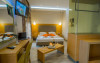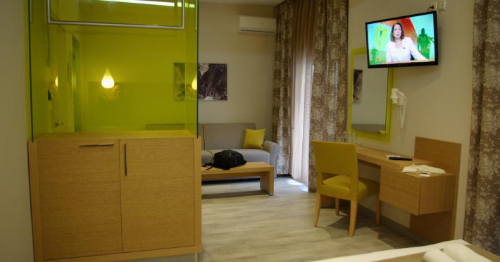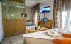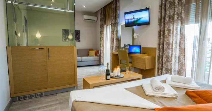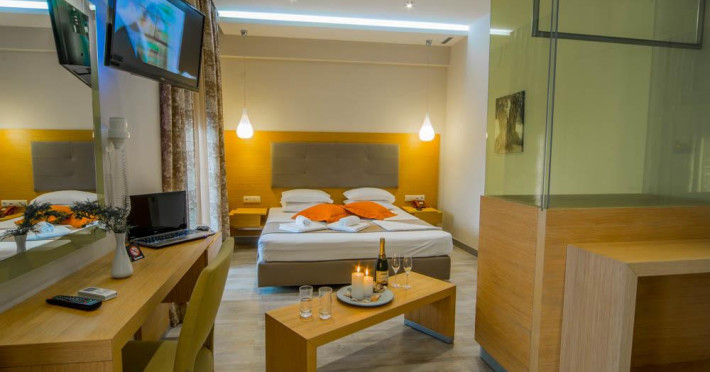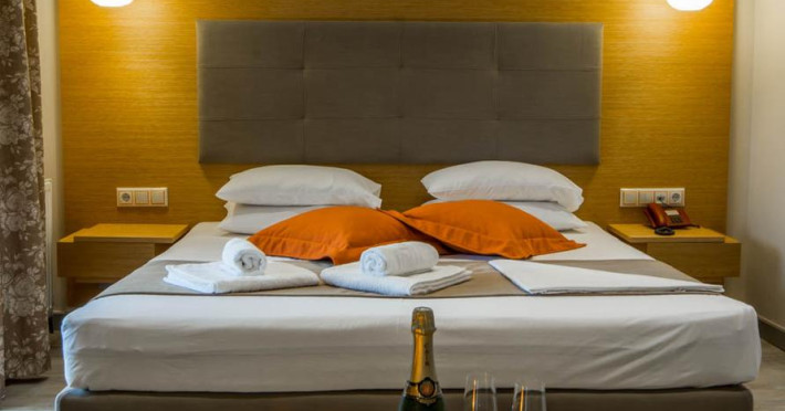Unele camere au balcon cu vedere la mare, unde oaspeții pot admira apusul sau răsăritul soarelui. Fiecare cameră dispune de minibar. Camerele luminoase de la George Hotel sunt dotate cu gresie sau parchet, aer condiționat, Tv și seif. În camere există baie cu cadă sau duș prevăzută cu foehn. Oaspeții au acces gratuit la serviciul Wi-fi în camere. Toate camerele spațioase de la George Hotel au canapea în living, ceea ce oferă un plus de confort. Fiecare unitate de cazare are frigider. Proprietatea oferă camere pentru familie cu o suprafață mai mare și un număr mai mare de paturi față de cele standard. Se pot rezerva de asemenea camere pentru nefumători.