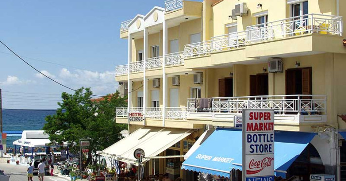 Situat în centrul oraşului Limenaria, la 20 de metri de plajă, Hotelul George oferă camere cu aer condiţionat şi balcon privat, cu vedere la Marea Egee şi la Golful Tripiti. Hotelul oferă un mic dejun cu preparate de casă şi Wi-Fi gratuit. Camerele de la Hotelul George sunt izolate fonic, mobilate clasic şi oferă TV prin satelit, frigider şi maşină de spălat. Fiecare cameră are baie privată cu duş sau cadă şi uscător de păr. Barul-restaurant al hotelului, deschis nonstop, serveşte mic dejun tip bufet, prânz şi cină. Personalul plin de solicitudine de la biroul de turism poate să organizeze excursii şi să ofere informaţii cu privire la atracţiile din Thassos, precum satul Kazaviti, situat la 30 km. Plaja lungă din Limenaria oferă numeroase taverne, cafenele şi magazine pe malul mării.Datorita dinamicitatii domeniului disponibilitatea ofertelor se modifica de la un moment la altul. De aceea ofertele sunt valabile in limita locurilor disponibile. Agentia nu este responsabila pentru eventualele neconcordante care pot aparea intre informatiile privind tarifele si alte detalii din site si informatiile primite in agentie. In aceste cazuri vor avea prioritate, intotdeauna, informatiile primite in agentie.