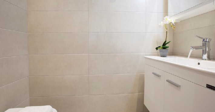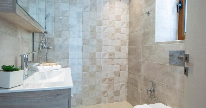 Dormitorul matrimonial beneficiaza de baie proprie cu cada.
