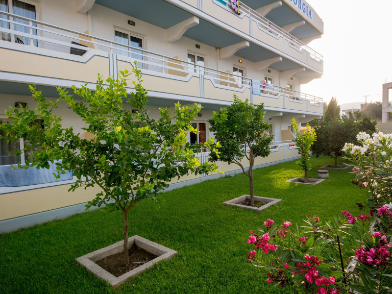 Georgia apartments are composed of two main buildings with 65 rooms in total located in the entrance of Afandou Town and at a distance of 17 klm from Rhodes Town.Builted opposite the Afandou Golf they offer the ideal environment for quiet and relaxing holidays. The location is perfect for excursions to the beaches of Afandou (500m), Kolymbia (5 minutes distance with a car), Lindos (40 minutes distance with a car), or for a visit to the Rhodes Town or the Mediaeval Town (17 km)Among the Georgia Apartments facilities you will find our pool for endless swimming, you can relax in our snack bar having a coffee or refreshments or you can try our traditional breakfast. Also you can enjoy a magnificent sunrise from your balcony. Surfing the internetalso is possible through our Wi Fi network.With Greek nights organized every week you will discover traditional Greek music and dances enjoying at the same time traditional Greek food.At Georgia Apartments you will meet the authentic Rhodian hospitality in a family environment with people always willing to serve you. The location of the Apartments is ideal in a quiet and natural environment near the Town of Rhodes.Georgia apartments are composed of two main buildings with 65 rooms in total located in the entrance of Afandou Town and at a distance of 17 klm from Rhodes Town.Builted opposite the Afandou Golf they offer the ideal environment for quiet and relaxing holidays. The location is perfect for excursions to the beaches of Afandou (500m), Kolymbia (5 minutes distance with a car), Lindos (40 minutes distance with a car), or for a visit to the Rhodes Town or the Mediaeval Town (17 km)Among the Georgia Apartments facilities you will find our pool for endless swimming, you can relax in our snack bar having a coffee or refreshments or you can try our traditional breakfast. Also you can enjoy a magnificent sunrise from your balcony. Surfing the internetalso is possible through our Wi Fi network.With Greek nights organized every week you will discover traditional Greek music and dances enjoying at the same time traditional Greek food.At Georgia Apartments you will meet the authentic Rhodian hospitality in a family environment with people always willing to serve you. The location of the Apartments is ideal in a quiet and natural environment near the Town of Rhodes.