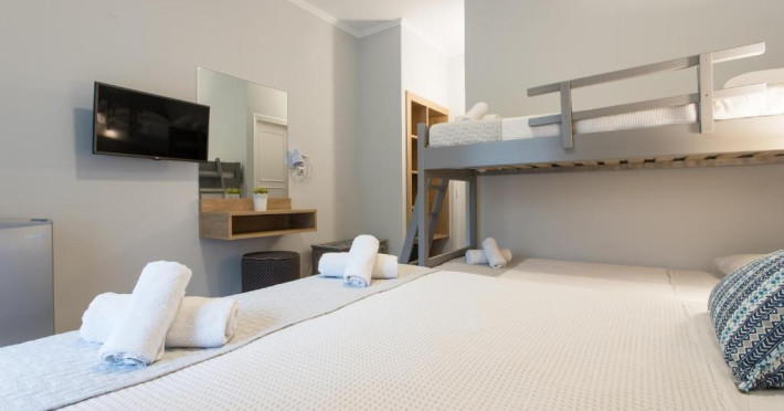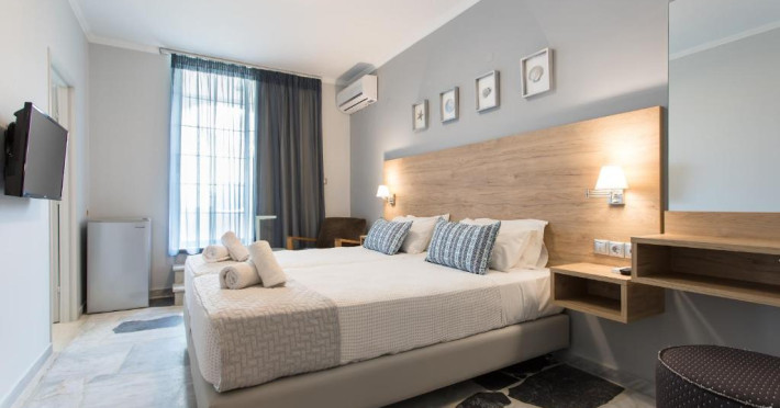 Camerele Hotelului Georgioupolis Beach au TV prin satelit, seif și minifrigider, iar unele unități au și o chicinetă. O baie privată cu uscător de păr este standard.