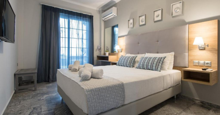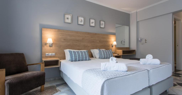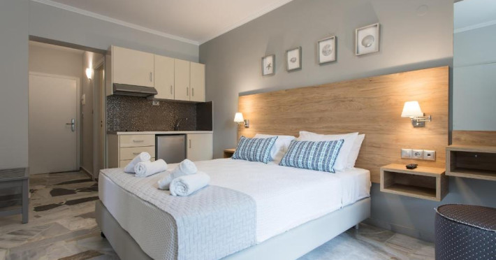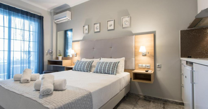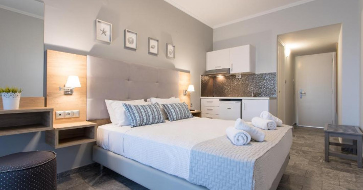Situat la 10 metri de plaja din Georgioupolis, acest hotel oferă Wi-Fi gratuit și un mic dejun bogat tip bufet. Camerele sale cu aer condiționat au un balcon cu vedere la Marea Cretei și la piscină.