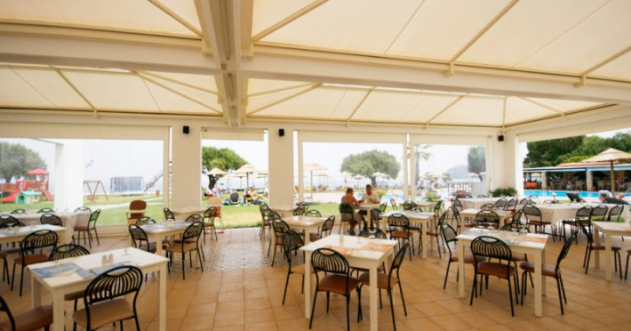 La Geraniotis Beach Hotel oaspeții au la dispoziție un restaurant care servește mâncare în stil bufet. Preparate din bucătăria internațională așteaptă să fie degustate în fiecare zi la micul dejun, prânz și cină. Masa poate fi servită atât în interior, cît si în aer liber, pe terasă, în funcție de vreme. Oaspeţii pot avea diverse băuturi răcoritoare sau alcoolice la bar.