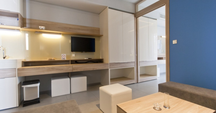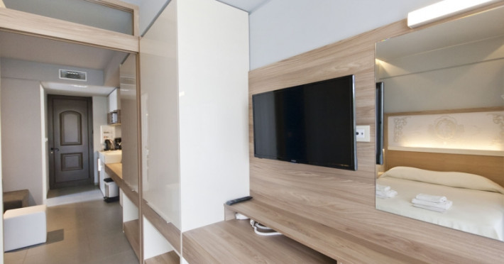 Sunt disponibile 137 camere. În camere există baie cu cadă sau duș prevăzută cu foehn. Camerele luminoase de la Geraniotis Beach Hotel sunt dotate cu aer condiționat, Tv și seif. Fiecare cameră dispune de un aparat pentru preparare cafea sau ceai. Oaspeții pot solicita serviciul de room service pentru a servi masa sau diverse băuturi. Oaspeții au acces gratuit la serviciul Wi-fi în camere. Curățenia in cameră se face zilnic. Fiecare unitate de cazare are frigider.