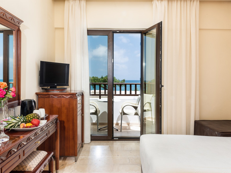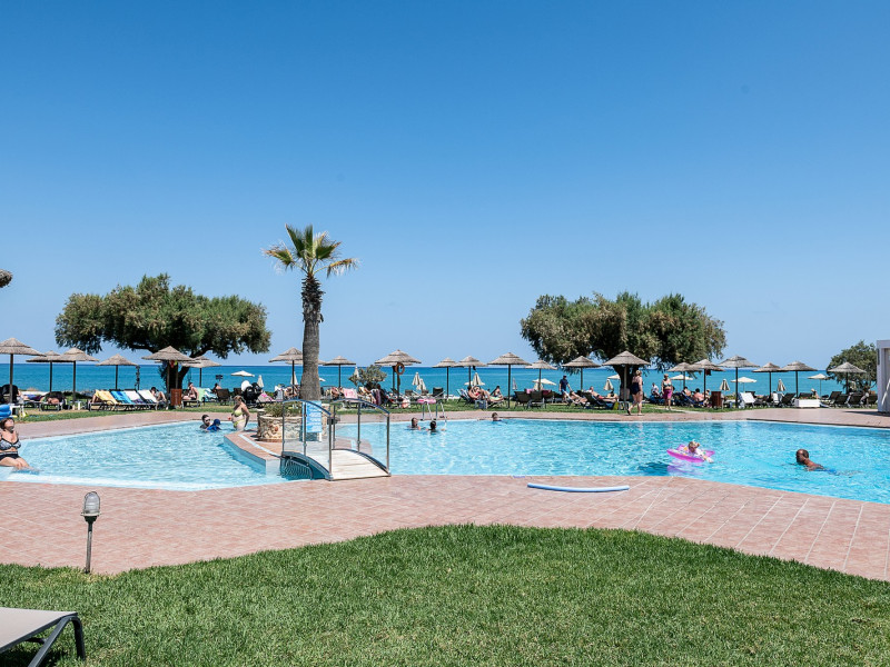 Geraniotis Beach Hotel is located in 30 acres of land, along the sandy beach of Platanias. The hotel is famous for its family environment and its warm friendly service, its high quality traditional cuisine, the flourishing gardens and the magnificent view over the Cretan Sea.