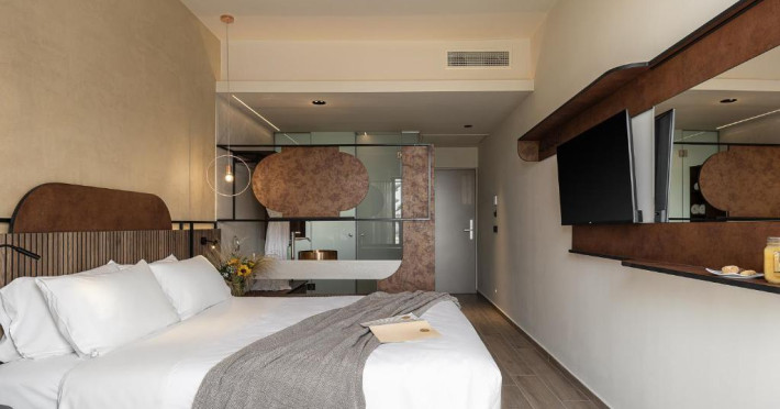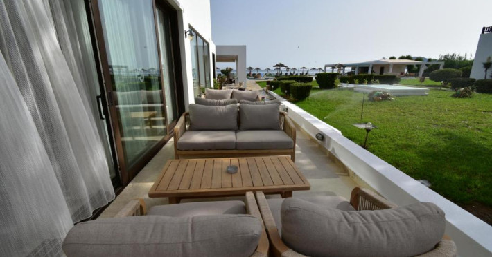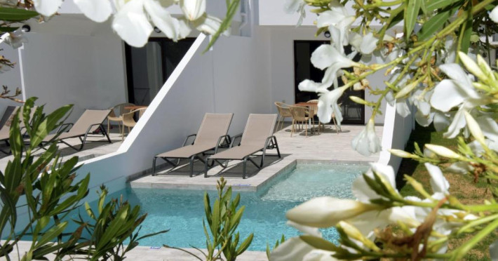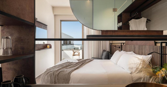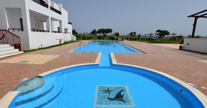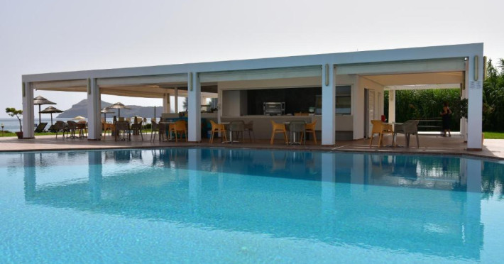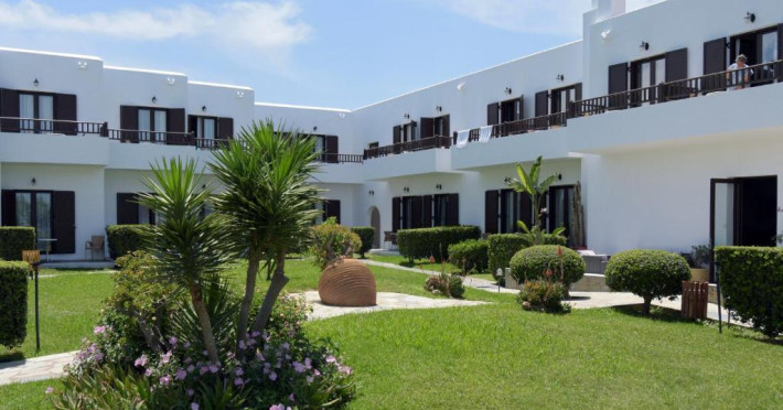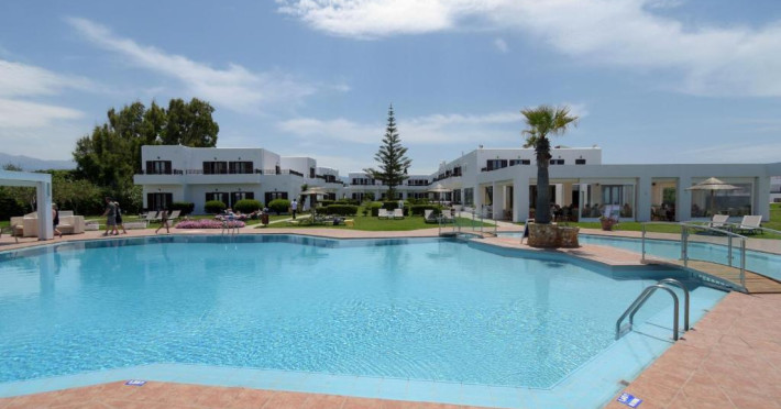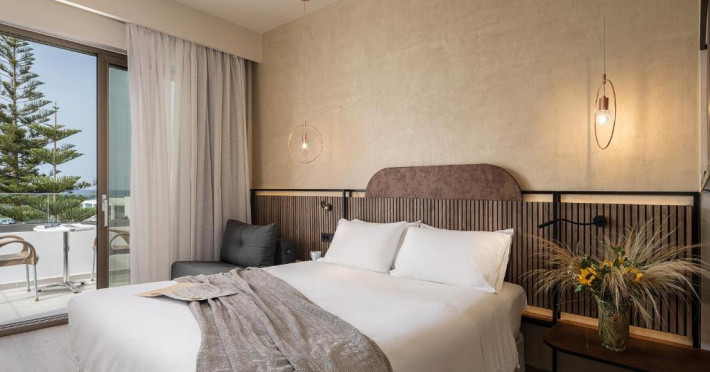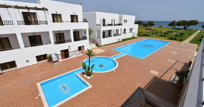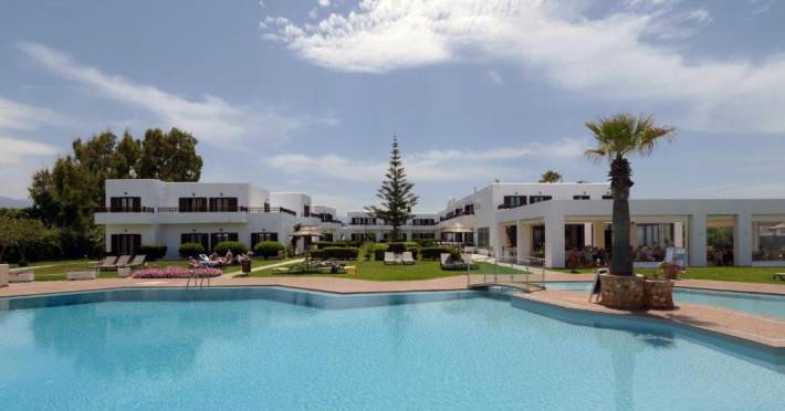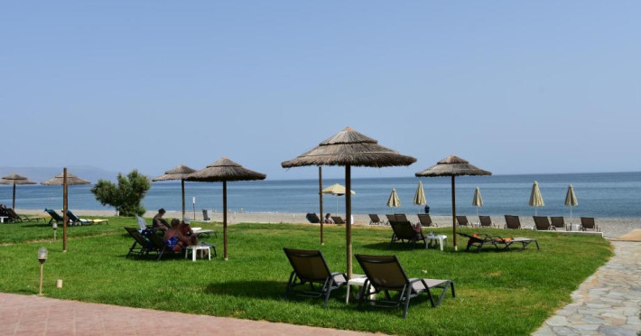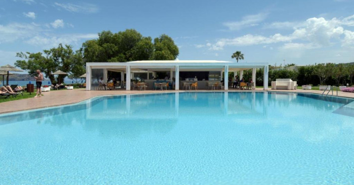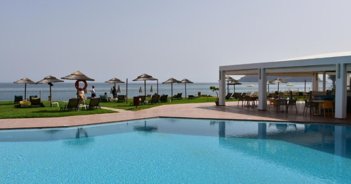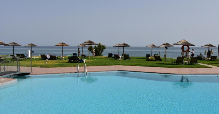 Camerele luminoase și confortabile beneficiază de balcoane sau terase, multe dintre ele cu vedere spre Marea Egee. Facilitățile principale includ o piscină in aer liber cu secțiune pentru copii, un restaurant cu specific mediteranean și un bar la piscină unde puteți savura cocktailuri răcoritoare.