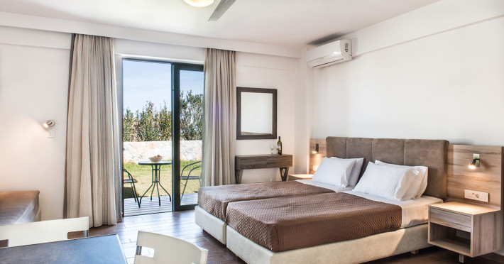 Our rooms are equipped with air-condition, Flat Screen TVs, WiFi and Kitchenettes and have a 3-4 person capacity (depending on the room). The visitors can enjoy the hotel's swimming pool throughout their stay or take a short walk to the nearby beach.